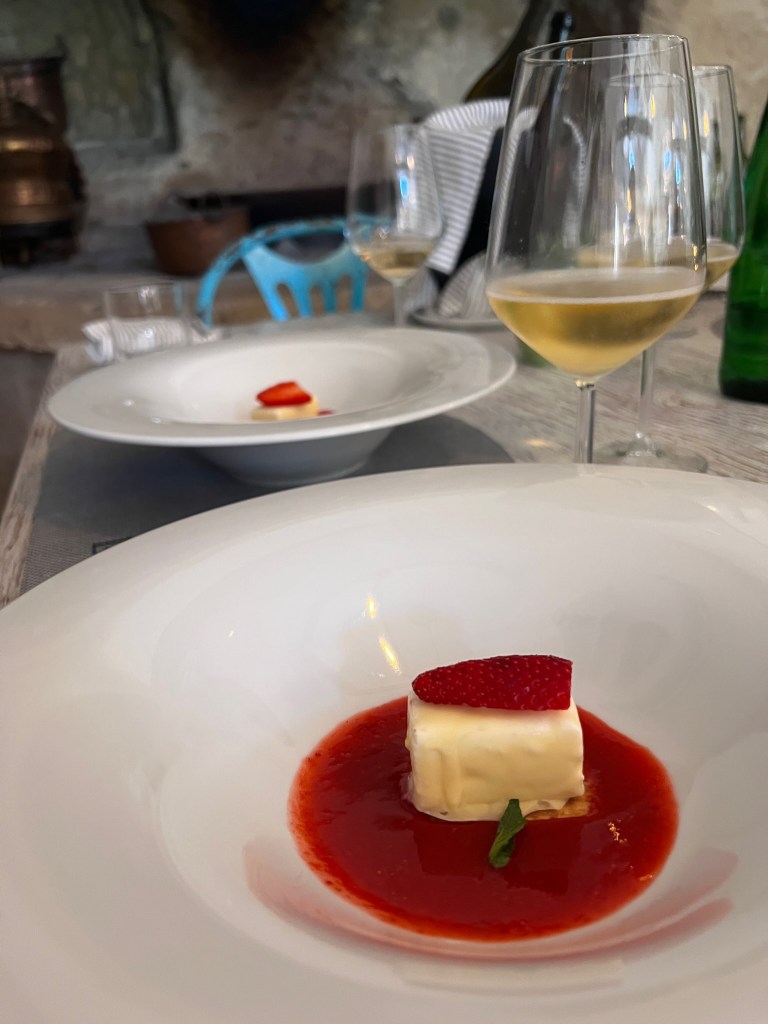 Sì, anche i dolci (semifreddo al cioccolato bianco e zuppetta di fragole, cubo di babà con panna e fragole) lasciano il ricordo. Esaltato nell’appurare la capacità di plasmare forme identitarie di tale foggia, con gioco e divertimento fuori da margini stereotipati.