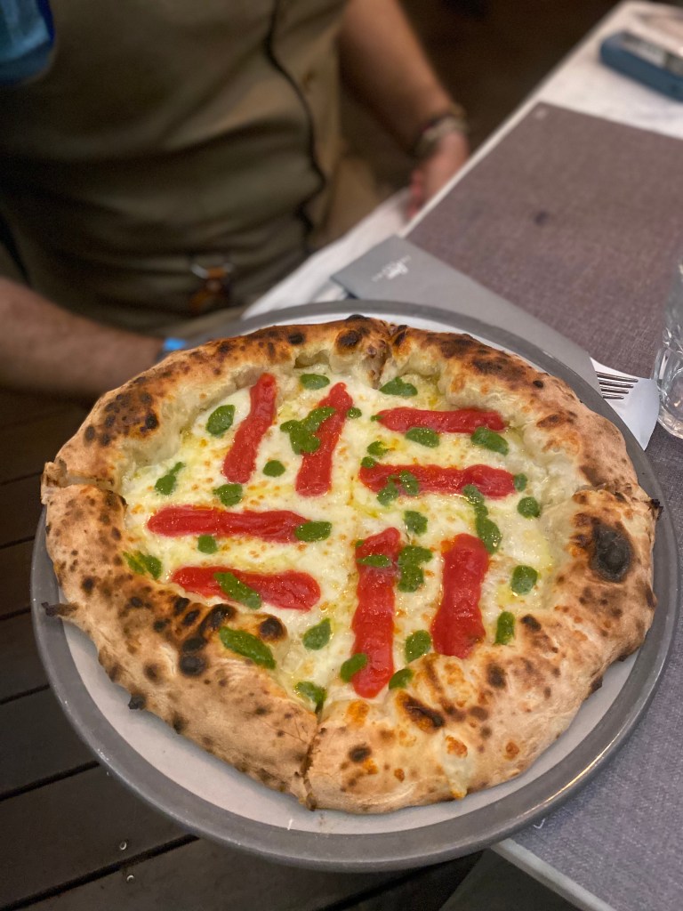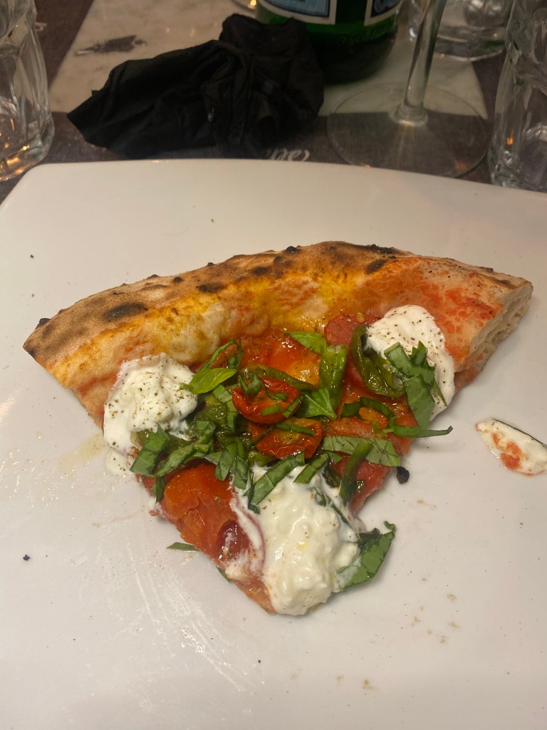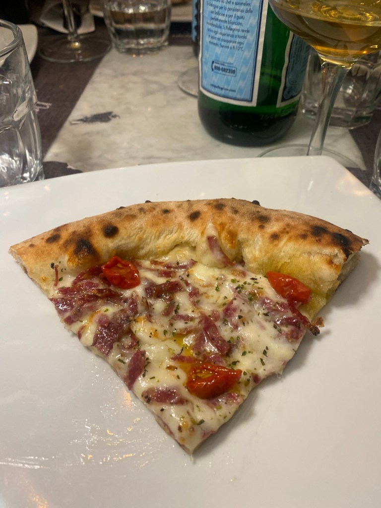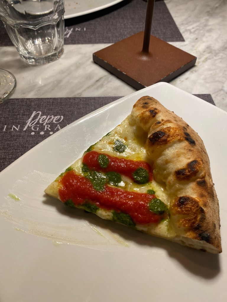 La Nero Fumé, giusto il tempo di pensarla; poche ore dalla nascita l’assaggio è d’uopo. Quattro ingredienti, solo quattro dannati ingredienti che insieme creano scompiglio. Fiordilatte affumicato, presente, protagonista. La dolcezza dei confit, come caramelle nella spinta umami e grassa della salsiccia stagionata di suino casertano. Profumo aromatico di origano del Matese. Il lusso della semplicità senza l’affanno di stupire, perché fluisce naturale. Magnetica.