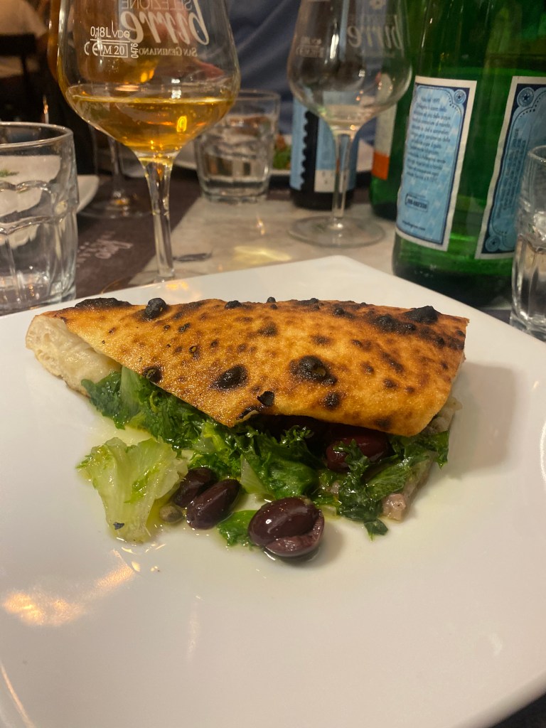 Ogni volta che si addenta il Ripieno con la scarola, messa a crudo nell’impasto che fa da camera a vapore, servito con abbondante giro d’olio, l’olfatto e il gusto si riscoprono vivi. La verdura resta verde, croccante, saporita. Arcaiche novelle paesane e reliquie agresti che raccontano di maestria, affabilità e concretezza. Spartito universale.