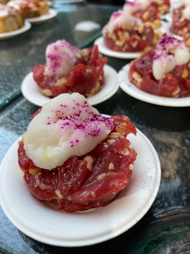 La Bruschetta con salsa allo scarpariello e gelato al parmigiano sarà in carta alla Locanda del Profeta di Napoli. Si perde la testa anche per la Tartare di tonno con stracciatella e gelato all’olio extravergine di oliva, le Ceviche di spigola con granita di gazpacho e la Tartare di manzo con anacardi, comté, riduzione di aglianico, sorbetto di mandorla e opuntia.