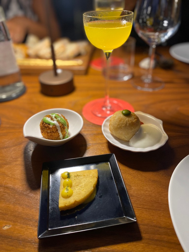 Tutto è cominciato con uno Sweet Orange, preparato con arance, patate dolci e gin dalla mixology sapiente di Mickael Reale e Martino Ascione. In sottofondo Pane e panella, Arancino scomposto e Bon bon di pizza fritta, spuma di ricotta e pomodoro. L’esperienza da queste parti va assaporata sempre lentamente.