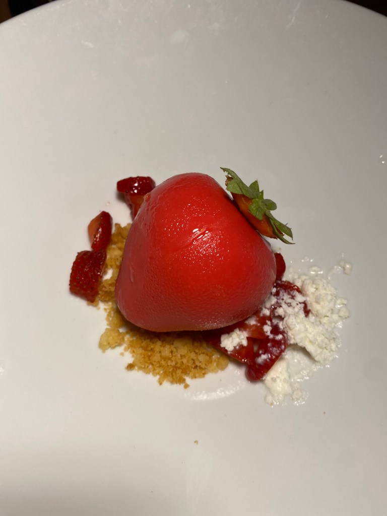 La cantina non delude mai, un po’ come i dessert concepiti come capolavori. Un occhio al vintage, ai ricordi, alla delicatezza. Per questa estate si gusta il Fior-di-fragola, ispirato al famoso ghiacciolo con panna degli anni ‘80, disegnato con cioccolato ruby, vaniglia, composta di lamponi e fragole fresche. Note acide vibrano tra tocchi cremosi e freschi. Da ricordare a lungo.