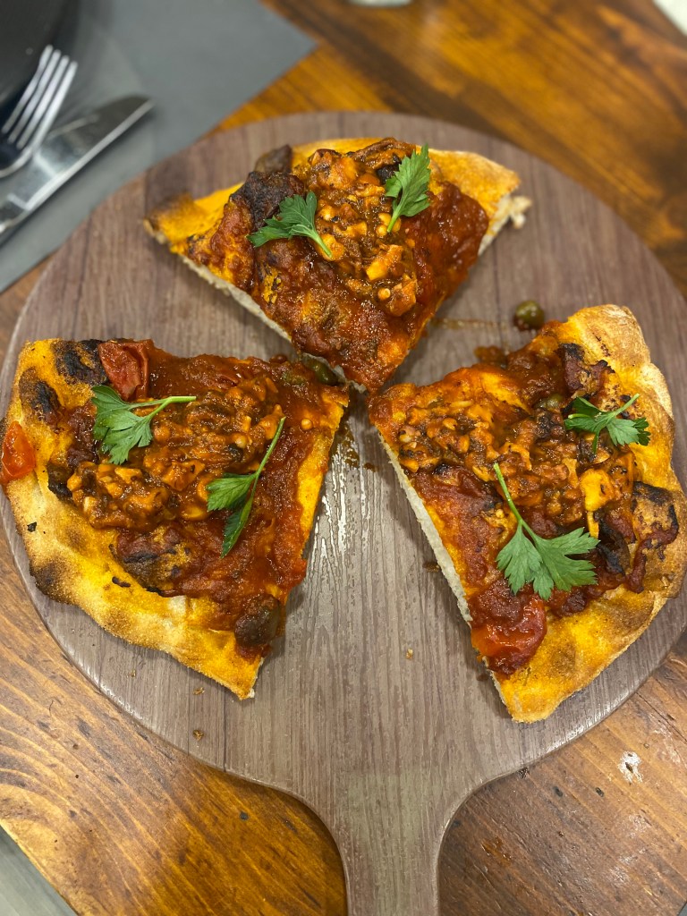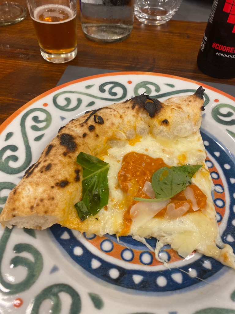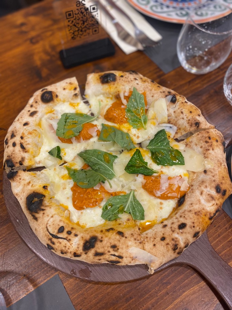 La Costiera è la Bella d’estate! Una profumosa freschezza dell’estasi del pomodoro che regna incotrastato. San Marzano cotto con i gambi del basilico, bufala e Provolone del Monaco. Orange Vibes su impasto classico ormai maturo, preciso, cotto a puntino, ammaliatore di palato. Pizza da bere…