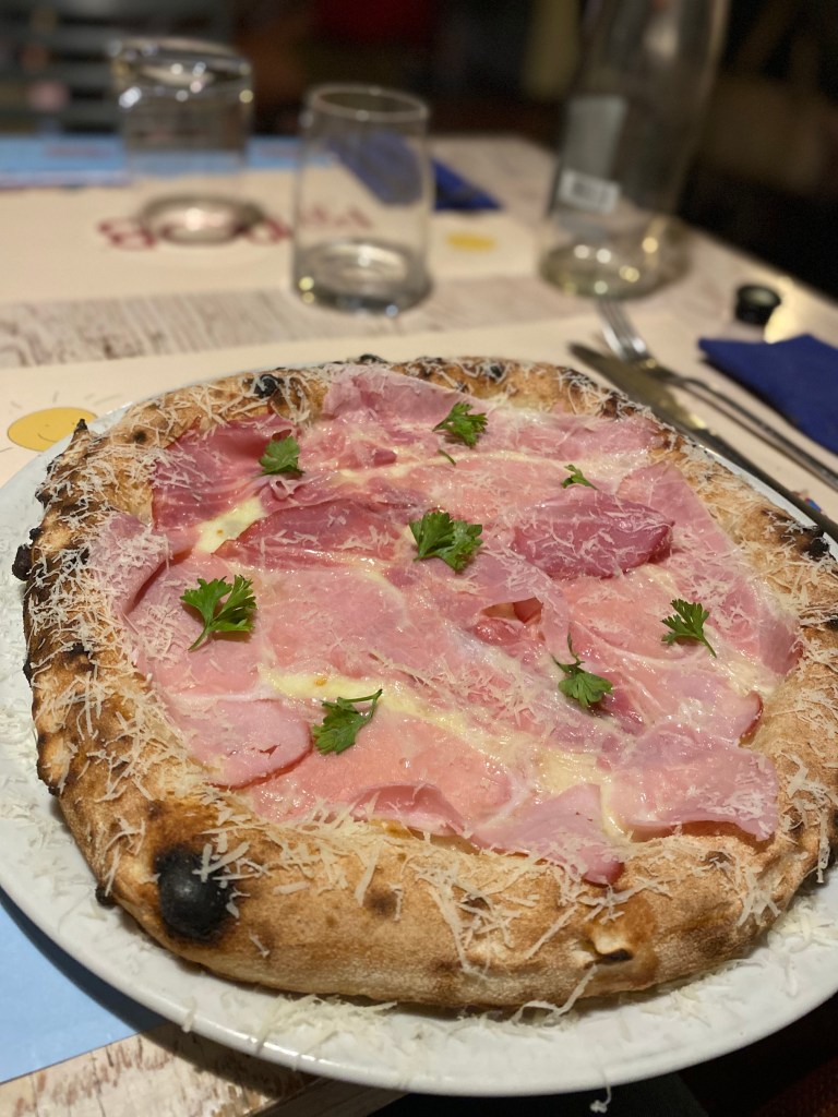 La Margherita adornata di cornicione espressivo si fa Saporita. Pomodoro e mozzarella (dal menù si rimarca il made in italy), origano fresco, parmigiano reggiano 18 mesi. Accademica. Il risultato è felice, energico, sorprendente. Il mio top ricordo. Fusione cosmica tra gli elementi, cottura assurda, la pasta scompare e l’olio urla. Tremenda.