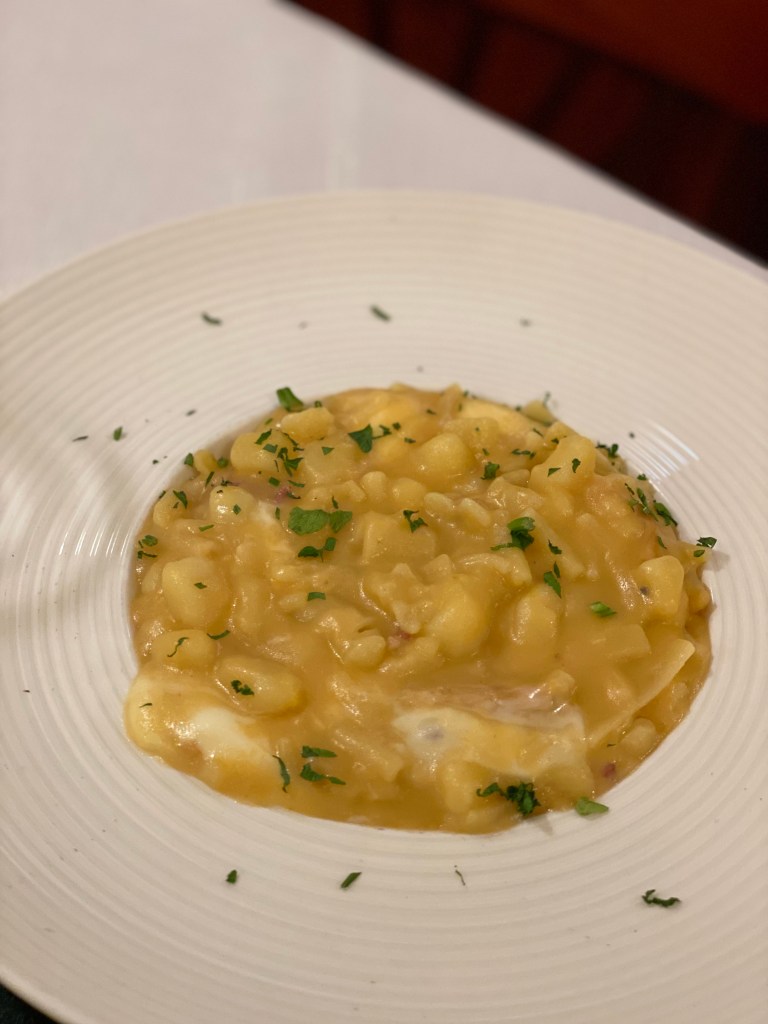 Fila la Pasta e patate e provola, riccanza di mistura estetica movimentata e divertente. Come un risotto…