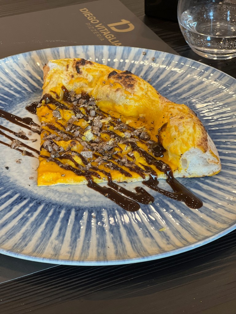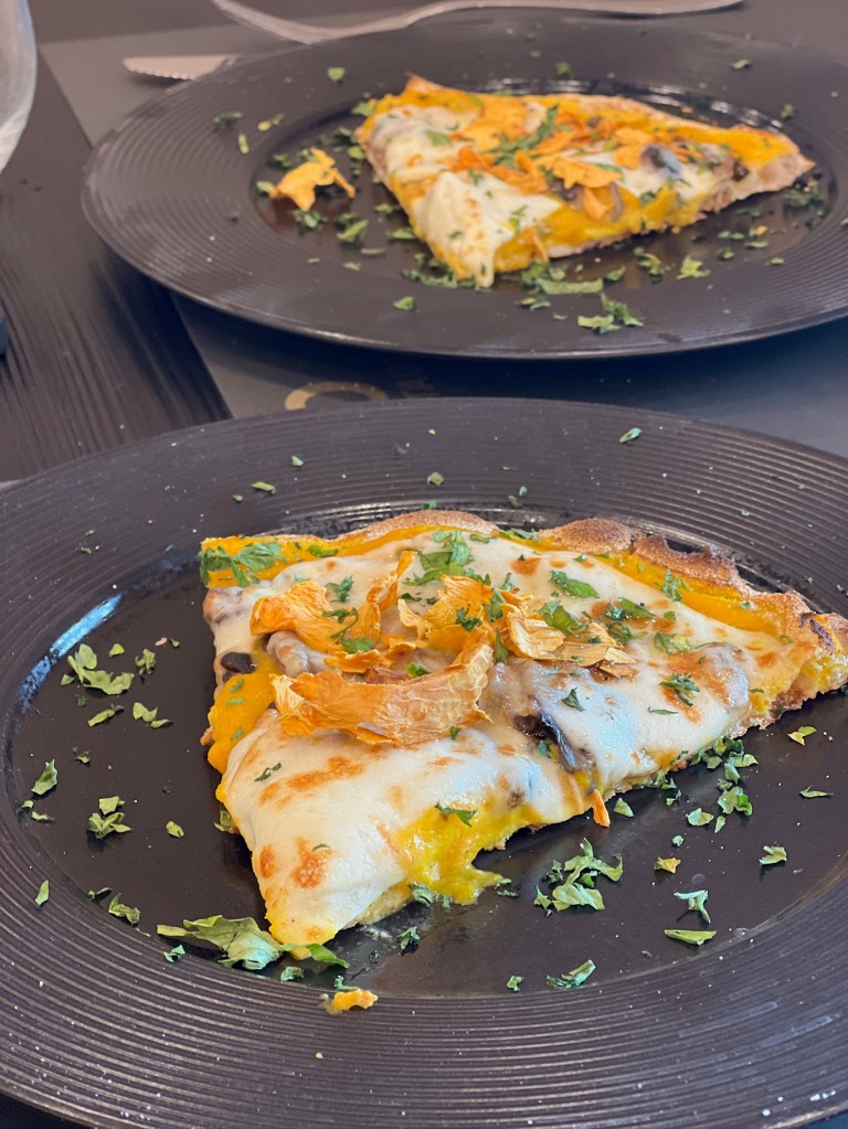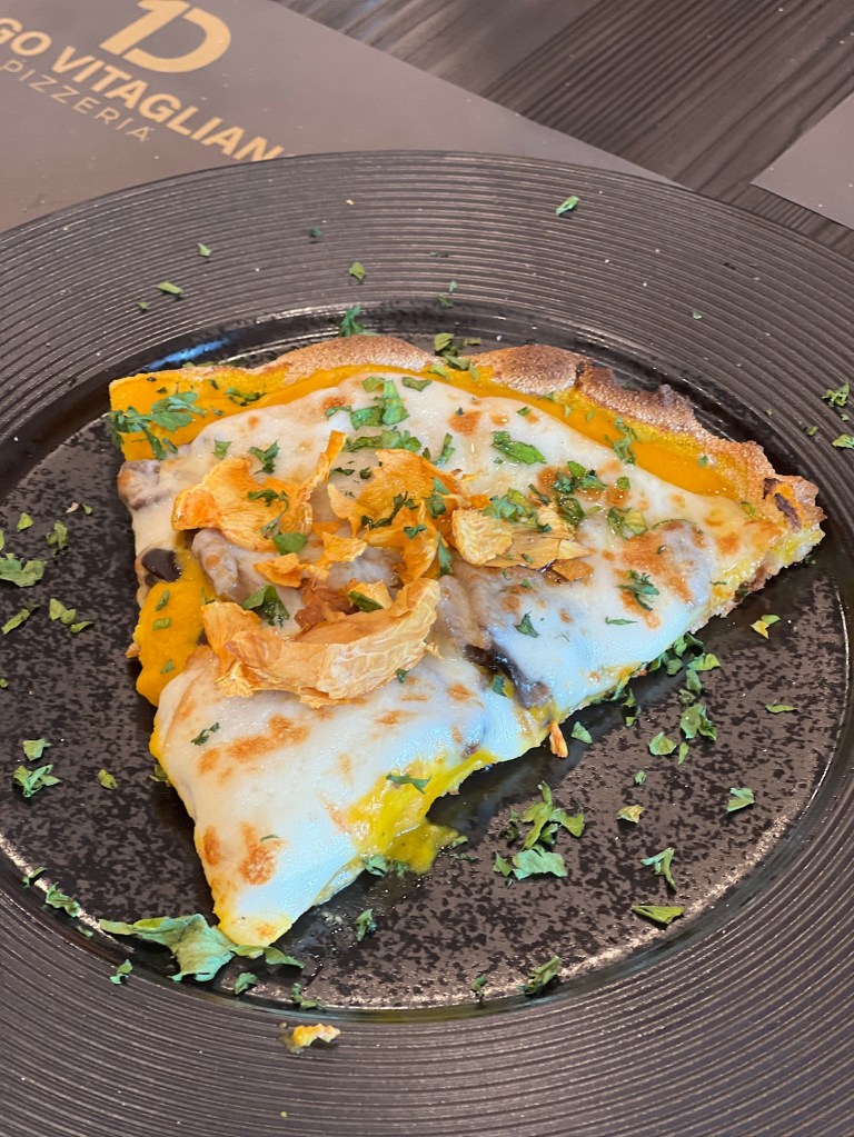 In chiusura crunchita in versi d’autunno. La Rustichella hygge ultra-croccante, come un Andy Warhol, si vernicia di zucca double face. I funghi tracciano il bosco e l’orange power cruncha di estasi tra prezzemolo e peperoncino. Una turbo-pizza presto signature per la perfezione realizzativa. Vanità di stagione.