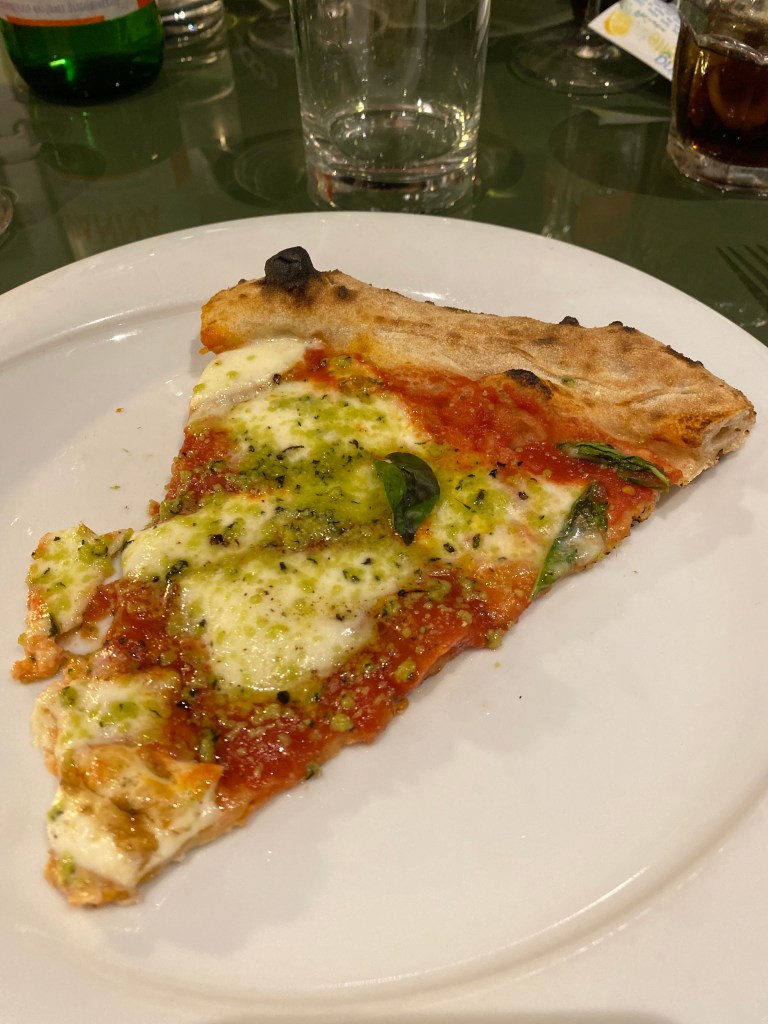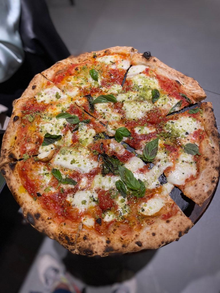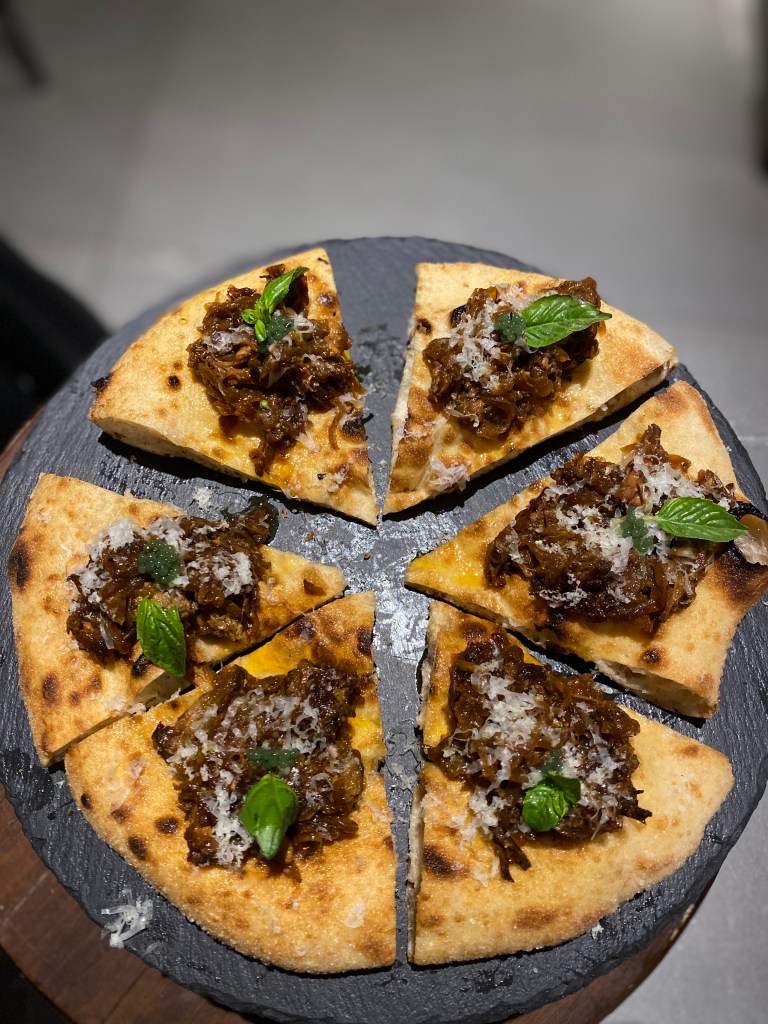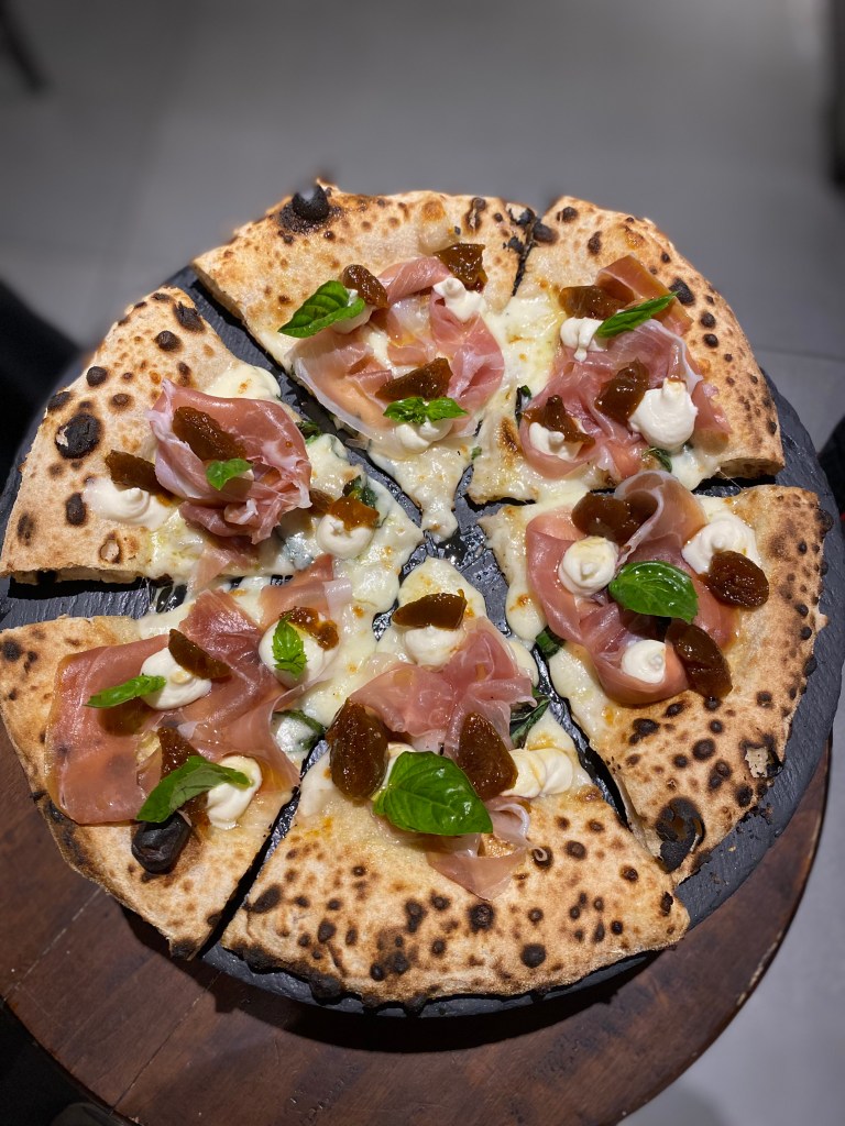 Infine, il magnetismo atavico della Pizza e fichi, manifesto perfetto della pizza moderna. Crudo, gorgonzola e fico caramellato leggermente piccante. La perfezione stilistica di vitalità al palato spesso latitante di questi tempi. Nirvanica.