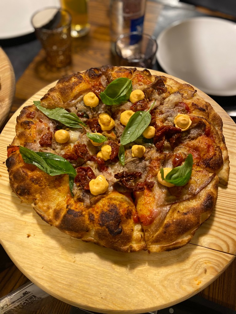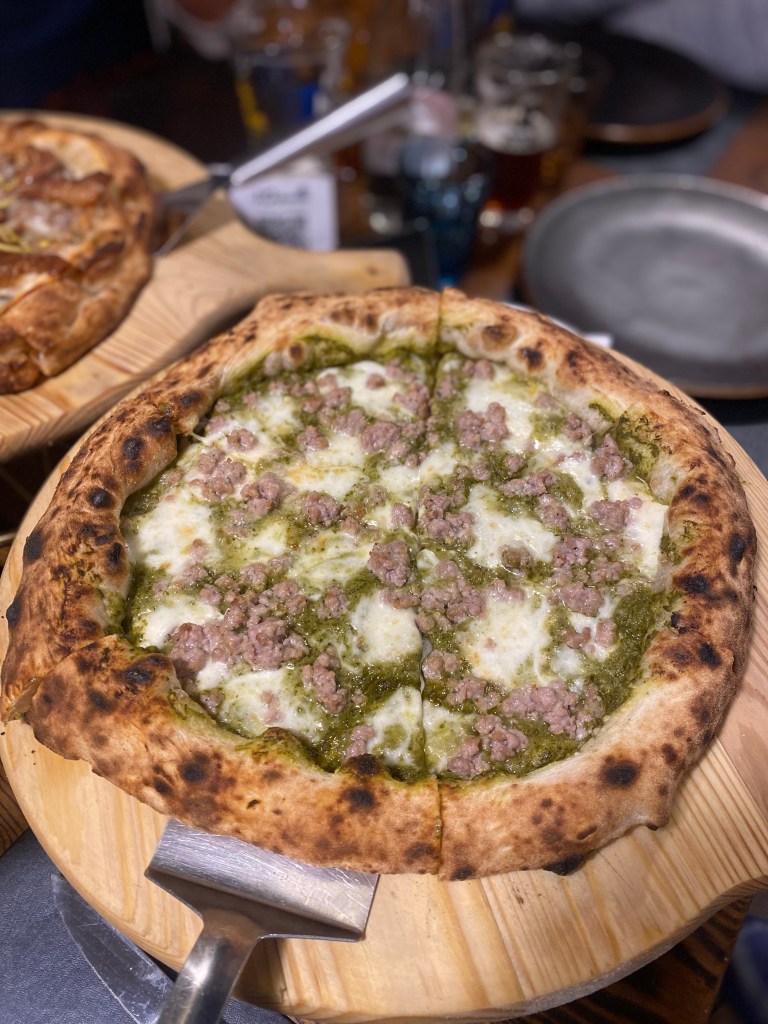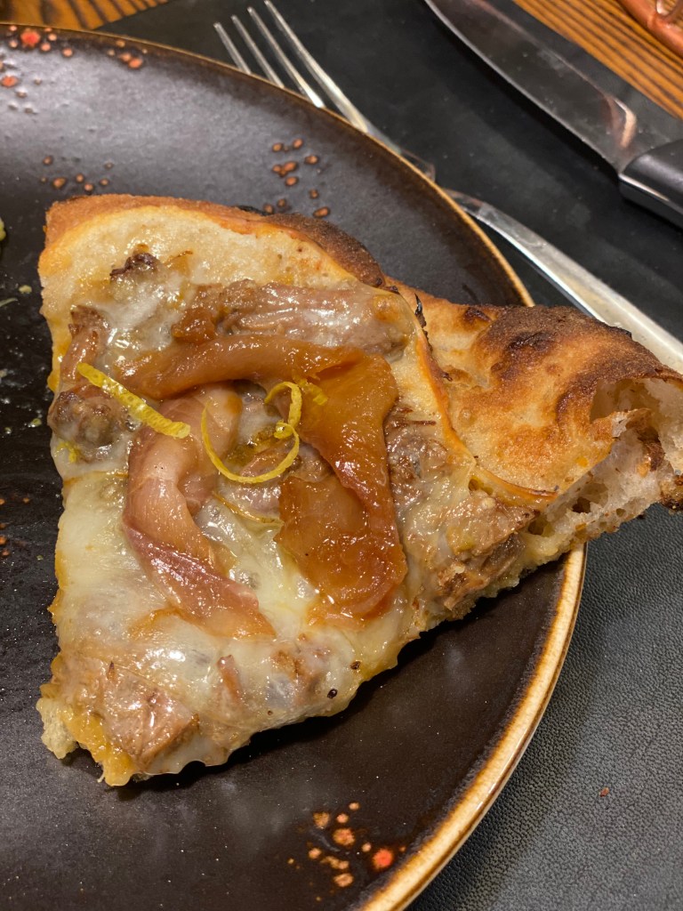 Subito la scintilla. La Domenica si erge sul trono della tripla cottura. Ragù, punta di petto di marchigiana, pecorino, pomodori secchi, maionese al ragù. Apoteosi anti-fighetta di ragionamento preciso, commovente e avvolgente. Un tuffo triplo carpiato e temerario che sbeffeggia il dualismo tradizione/innovazione. Tonante.