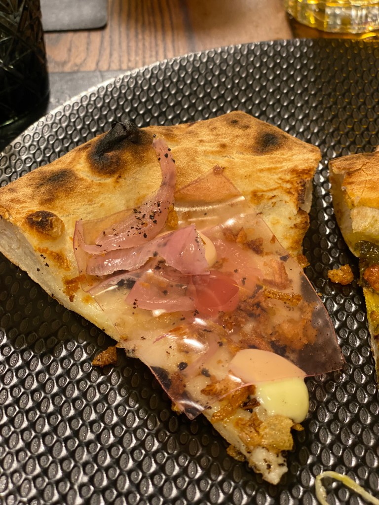 Le consistenze della cipolla da 5 passano a 7. Crema, fermentata, croccante, bruciata, maionese, marmellata e gel. Cipolla Eccetera. Un solo maledetto elemento che genera entropia positiva. Migliorare ciò che è già massimo. Domande, ricerca, fame di conoscenza e spunti di meraviglia. Incantato.