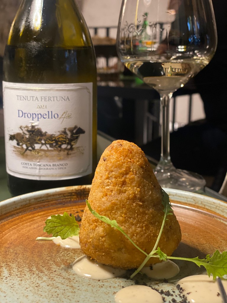 Fritti da-mare. Certo, raccontano le storie del mare. Crocchè di patate e baccalà con estratto di riccio di mare e mozzarella affumicata. Oro dei fondali. La potenza non è nulla senza il controllo. Delicatezza e sostanza. Sincerità quasi accecante. Luminosa come l’arancina di mare.