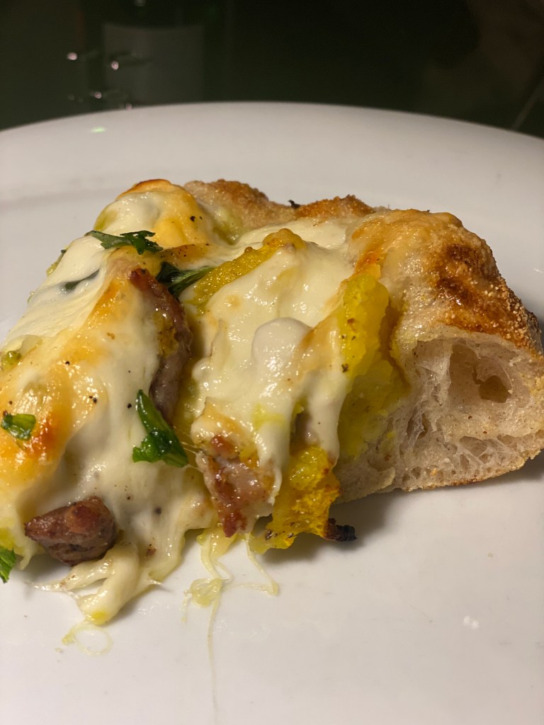 Ruoto. Comfort e rigore tecnico. Casereccia style. Pasticcio di patate alla curcuma, salsiccia di nero casertano, fontina, pepe fresco, basilico. Come in un Van Gogh. Gusto, ricerca e assonanza espressiva. Piaciona.