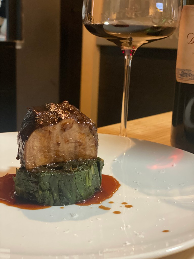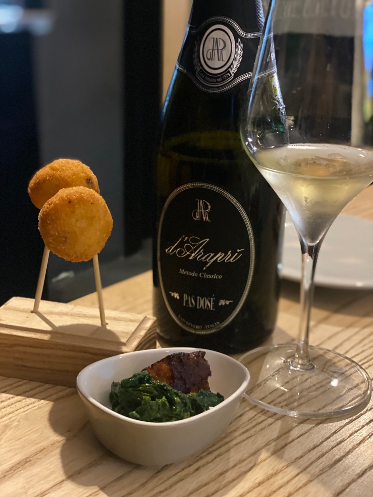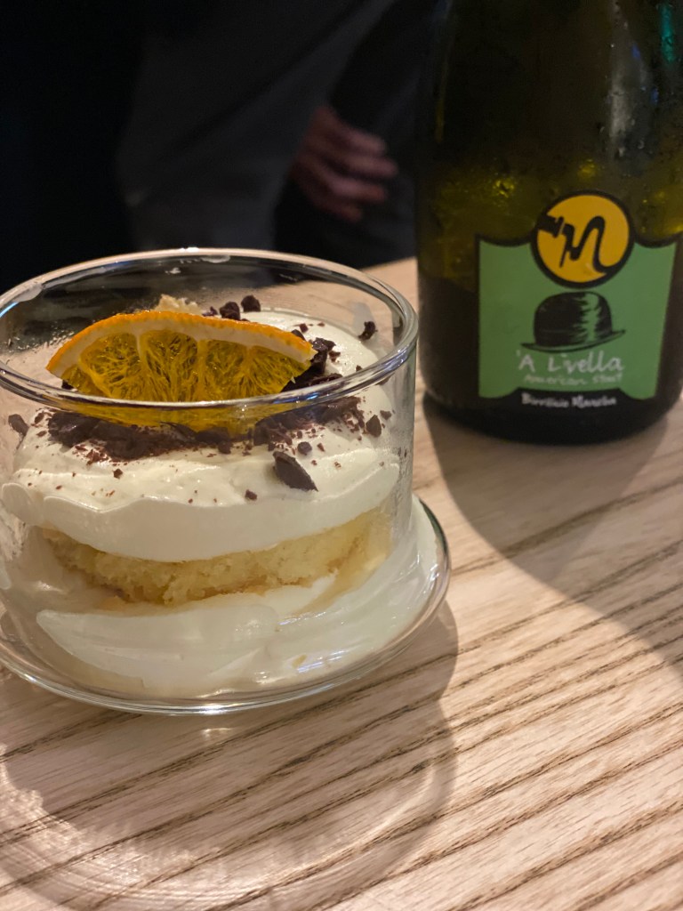 Lo stile acuto si riscopre sia nella guancia e scarola, coerenza stilistica fatta di gusto e perizia sensitiva, che nel trionfo conclusivo di dolcezze dove un tiramisù al riso esalta l’abbinamento con una American Stout dalle forti note al caffè.
