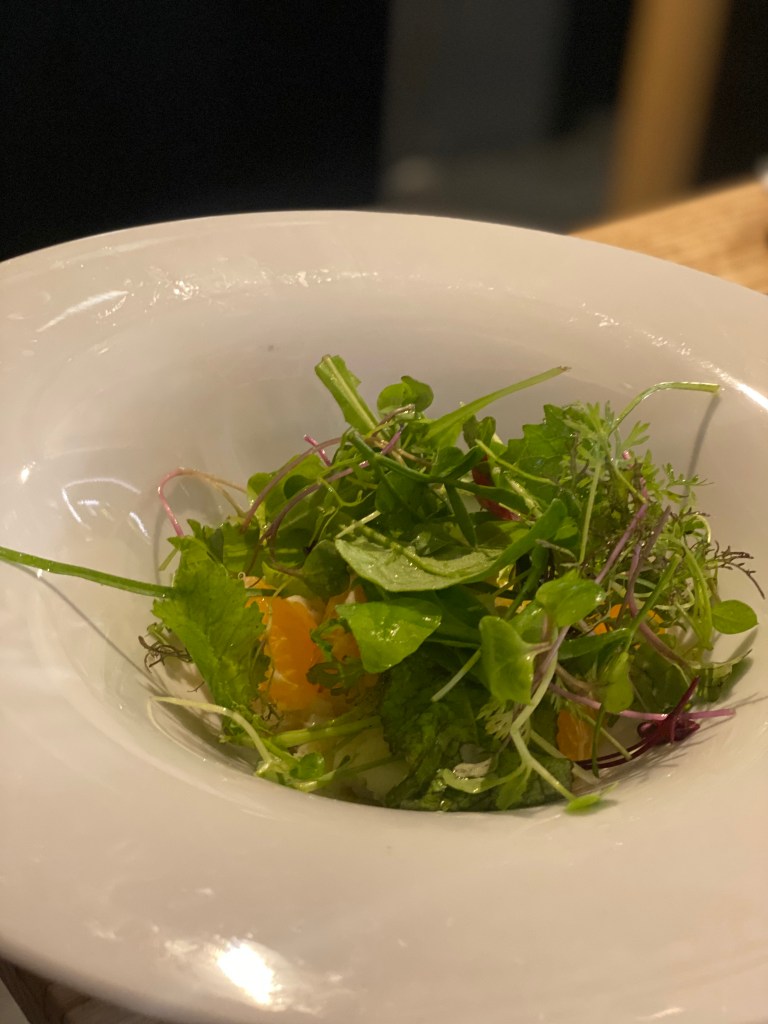 Merluzzo, misticanza e clementine. Dipinto di una fuga spirituale. Trittico che rinfranca per pensiero e movimento.