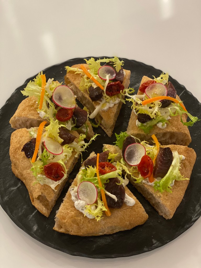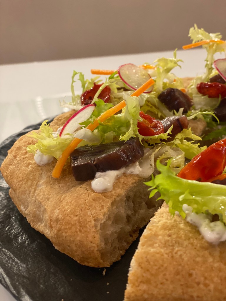 Il Padellino Mediterraneo è geometrico, strutturato, sofficissimo. Al morso la sorpresa dell’umami marino dalla palamita marinata con la sinergia acida dello yogurt e fresca della misticanza e limone. Cordialità da lodare.