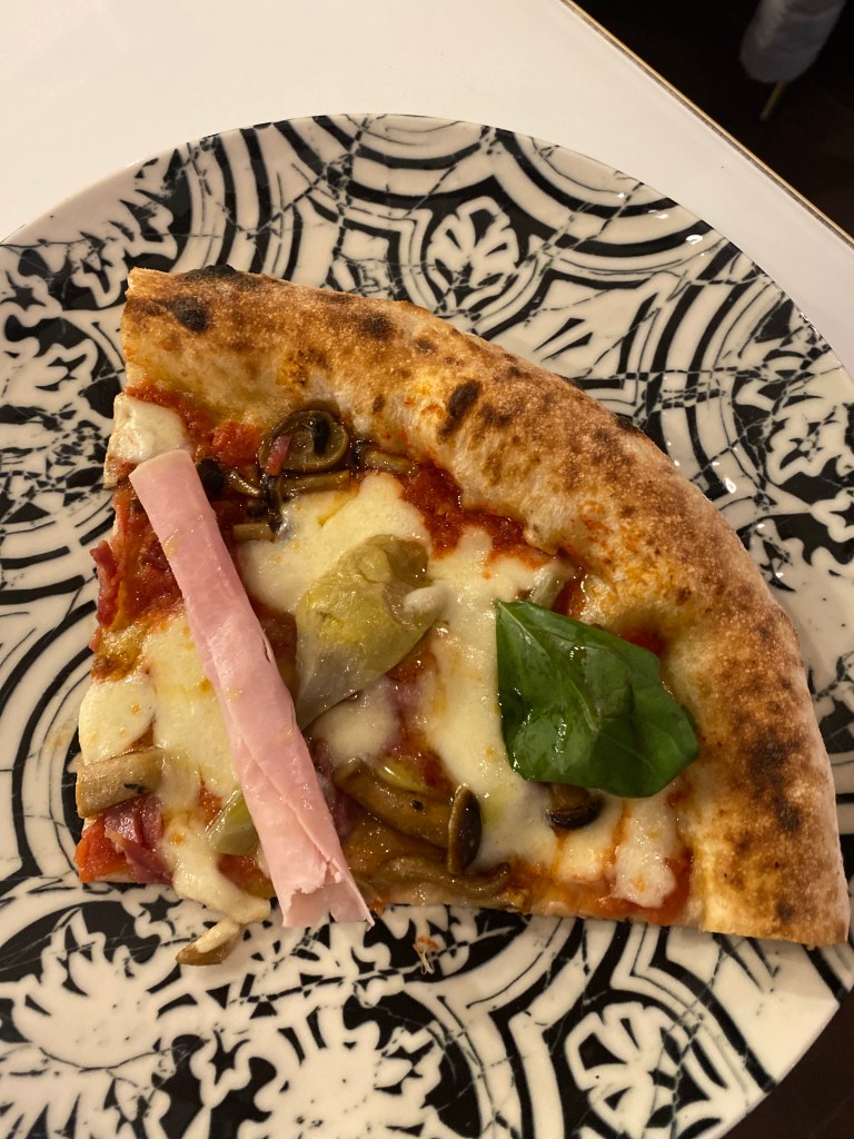 La Capricciosa Campagnola lascia il ricordo. San Marzano, pioppini spadellati, salame Napoli, carciofi cotti a vapore, prosciutto cotto. Elenco delle cose che adoro che insieme si esaltano a vicenda. Consistenze, equilibrio e la beltà della schiettezza del morso-tira-l’altro. Perfetta.