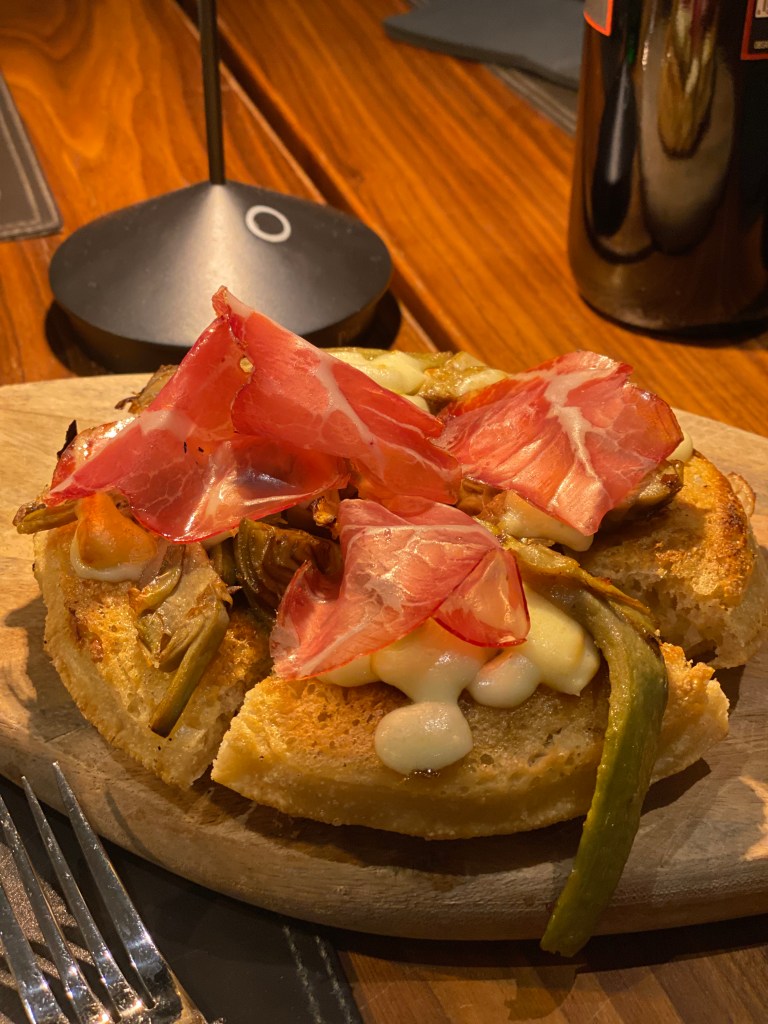 Chimere di focaccelle con carciofi, scamorza, capocollo nero Santoro e pepe rosa. Sfiziose, goderecce, vestite di morbidezza.