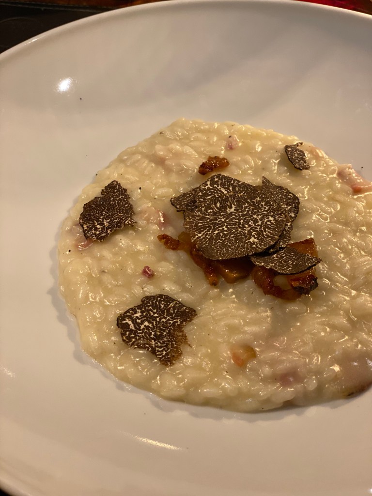 Magistrale, autentico, soave e piacione, cremoso e profumato, aggettivi su aggettivi per il Risotto Sant’Andrea al tartufo nero Irpino con pancetta di mora Beneventana mantecato al caciocavallo podolico. Reminiscenze papillari vivide come camini accesi, a dispensar tepori d’accoglienza.