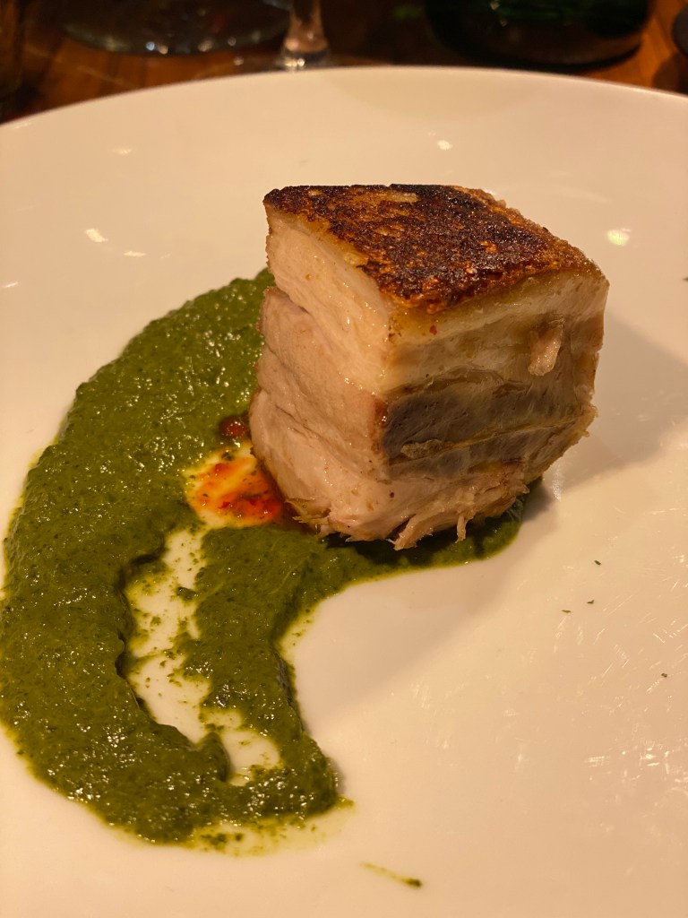 E le boccate d’aria speciale continuano con la Pancia di Maialino brasata con passatina di friarielli e marmellata di peperoncino (su quest’ultima ci ho lasciato il cuore!). Succulenza.