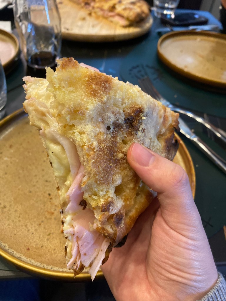 Poi la pala romana che si fa tonda e diventa sandwich super crunch. Farcita nel cuore con crema di patate arrosto, porcini, provola, prosciutto cotto Cillo e, in superficie, con abbondante grana. Consistenza e sapori goderecci, con lo scrocchio double-face, labirinto di ingredienti che tocca ogni precisa sensazione di tendenza dolce. Come le montagne russe…