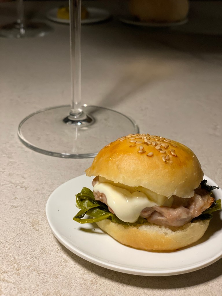 Mini bun con maialino nero a punta di coltello, provola e friarielli, l’amuse-bouche che porta il timbro di Partenope. Evergreen.