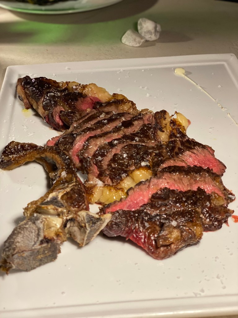 Costata Danese, tenera nella fibra con piccole infiltrazioni di grasso e succulenta nel gusto con un colore rosso intenso. Cottura perfetta, sapore intenso, estrema morbidezza. Emorragia salivare.