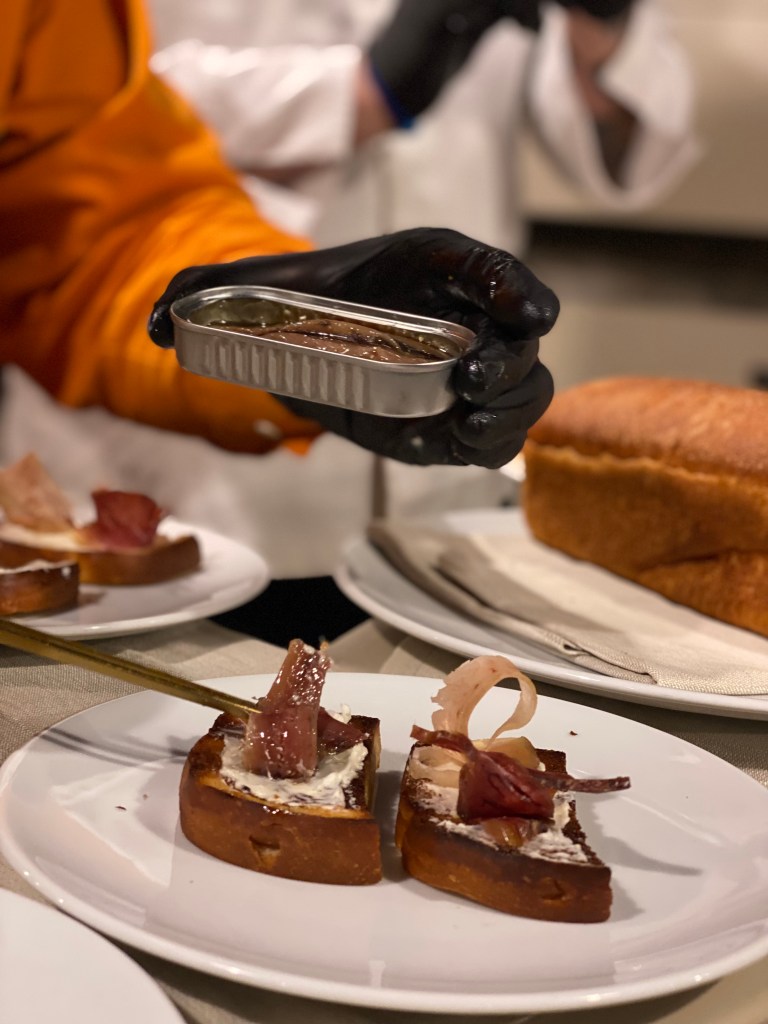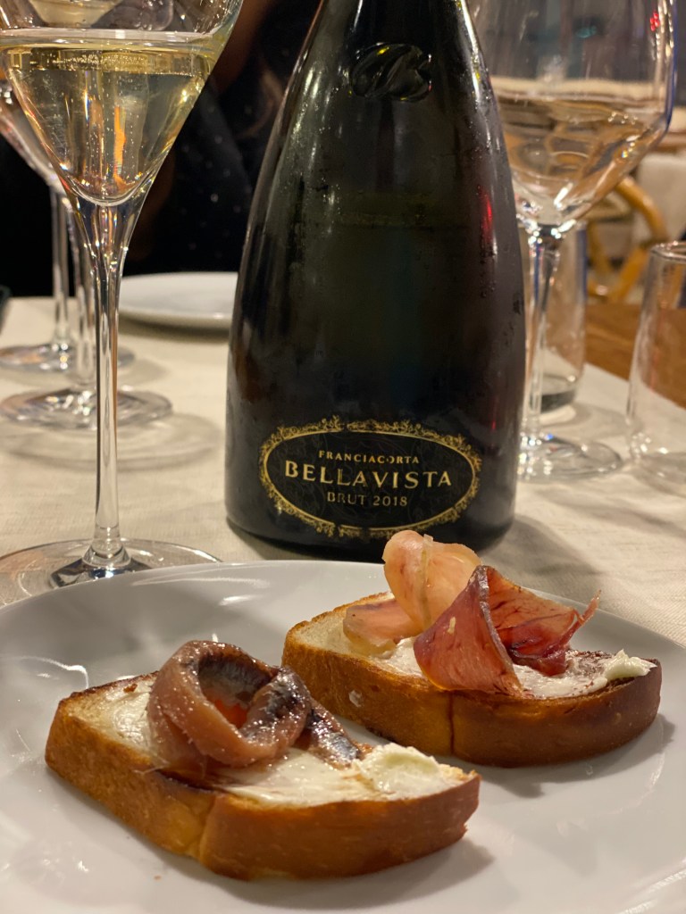 Il C’era una volta è danzante… Spennellate di burro al limone su pan brioche homemade e girandole di salumi da-mare (ventresca di pesce spada affumicato ai rami di ulivo, ventresca di tonno rosso) e alici del Cantabrico. Attrattiva, quando senti certi profumi, siediti e godi. E poi bollicine… (Teatro alla Scala Franciacorta Brut Docg 2018 – Bellavista)