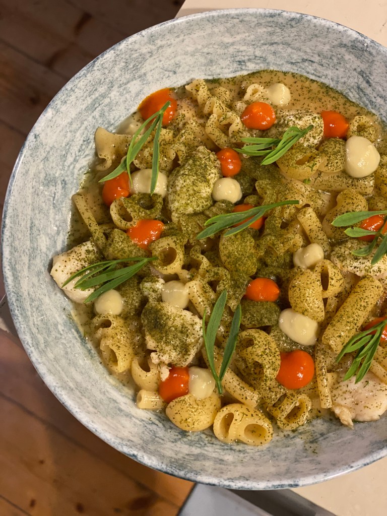 La pasta mista si fa quadro nel ristretto di pesci di scoglio, crema di finocchio, pomodorino del piennolo all’arancia, alloro e finocchio di mare. Sapeva di tutto, sapeva urlare e sussurrare, terra, mare, radici, vanità. Un piatto di felicità e sapienza.