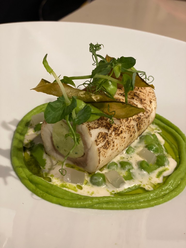 Raffaello, poi, passa da qui, con la Spigola farcita con la sua mousseline, capesante, piselli alla menta e limone bruciato. Più buona che bella, pensa te! Un’ode alla tendenza dolce, al candore, alle linearità. Da cerchiare col pennarello rosso dei gioielli de la carte. L’eleganza dorata d’annata del Fontanavigna Magnum Pallagrello bianco 2013 – Terre del Principe.
