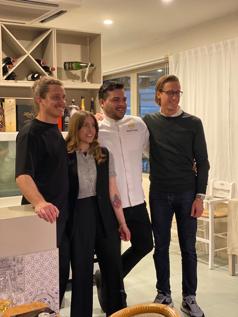 Un mix di cugini/fratelli (Fiorenza, Fabrizio e Francesco Gargiulo e Antonino e Vincenzo Incoronato), Marina Grande di Sorrento (Na) e piatti disegnati coi pastelli da un bimbo vivace.