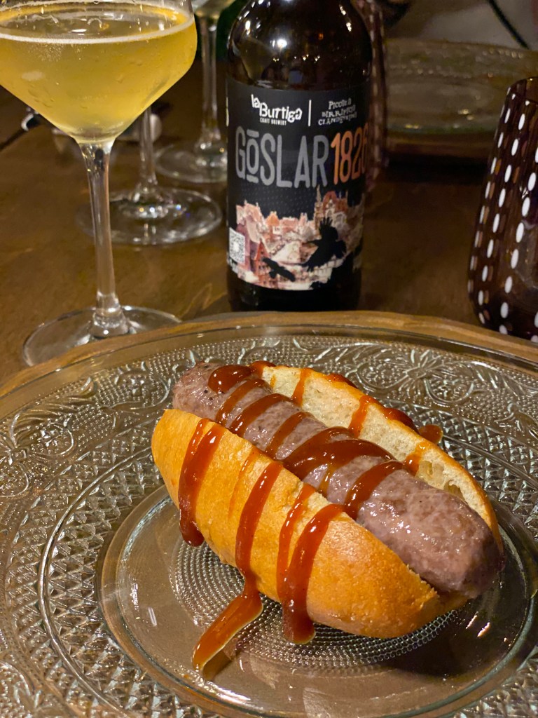 Ruota l’insegna “Open” il Fast food Fermenta, signori, con la più bella del reame: hot dog (di Pezzetta) con würstel di pecora e salsa bbq di pecora (di Cornacchia). Eccellenza autoctona con linguaggio moderno. In abbinamento una sorprendente Goslar 1826 (gose prodotta dal Piccolo Birrifico Clandestino in collaborazione con il birrificio La Buttiga), freschezza e sapidità dotate di note speziate al servizio di tendenza dolce e grassezza. Good food, good mood!