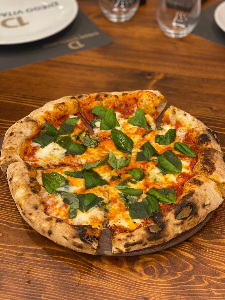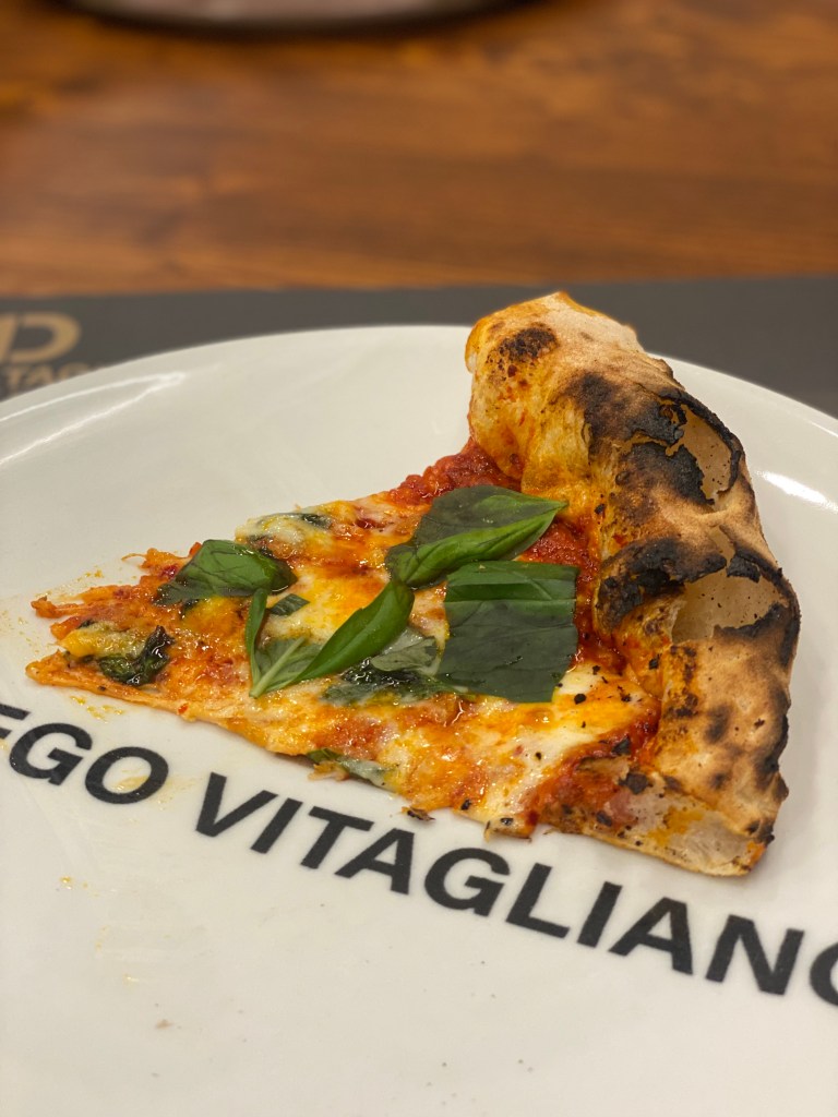 La Diavolita-di-Dieguito sembra la Bombonera. Colorata, festante, vulcanica, profumosa. Piccantezza stechiometrica: la ‘nduja di Spilinga, diluita con il San Marzano, si scioglie nella stretta col fiordilatte. Morso lungo, denso che esplode in freschezza per il surplus di basilico. Circonferenza giottesca dal crunch lieve del cornicione che completa il fil rouge di un tifo che coinvolge un senso alla volta. “Brasil, decime qué se siente…”