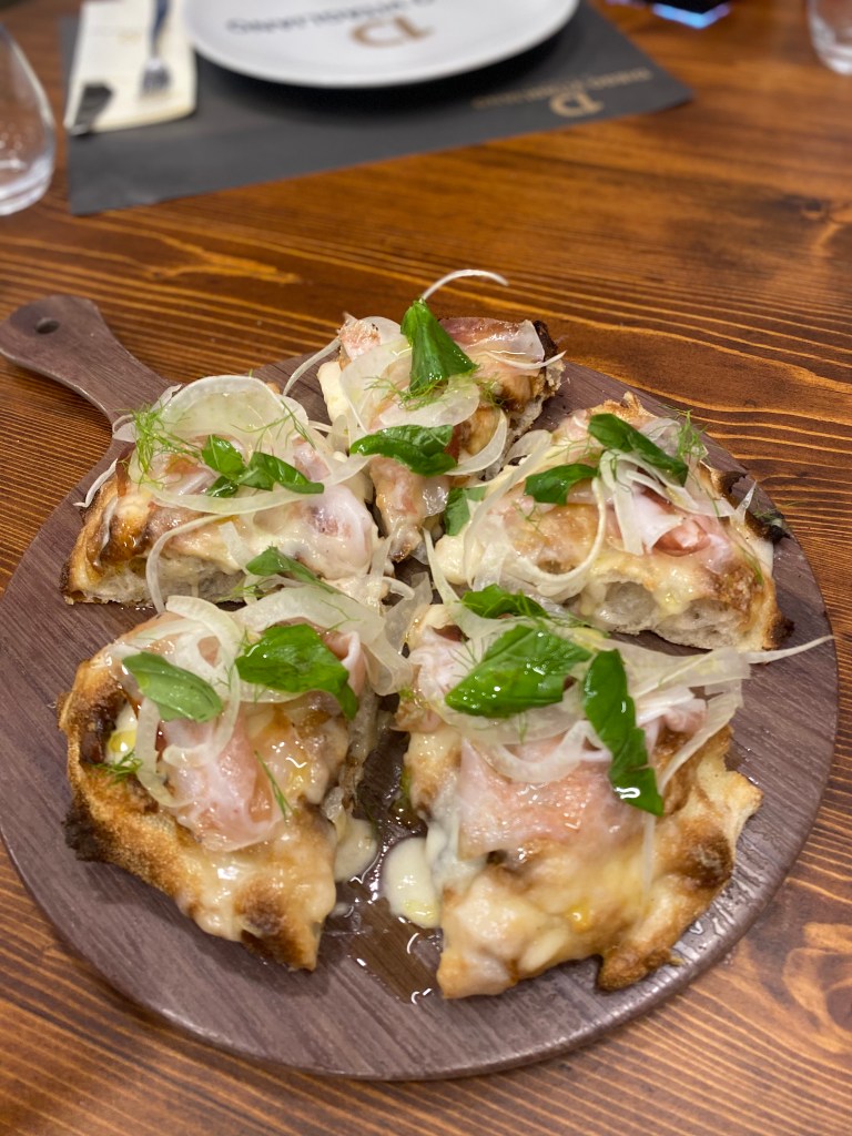 Un menù mai immobile che prende in giro lo stupore. Con i suoi impasti Diego preserva la storia, ritoccandola, di tanto in tanto, per lasciarla ripetersi sempre attuale. E vi sembra poco, correre liberi come nuvole… Pizzaiolo universale che carezza i grandi classici, complessi e morbidi, e una cucina di onde a colori e tempeste romantiche sotto controllo.