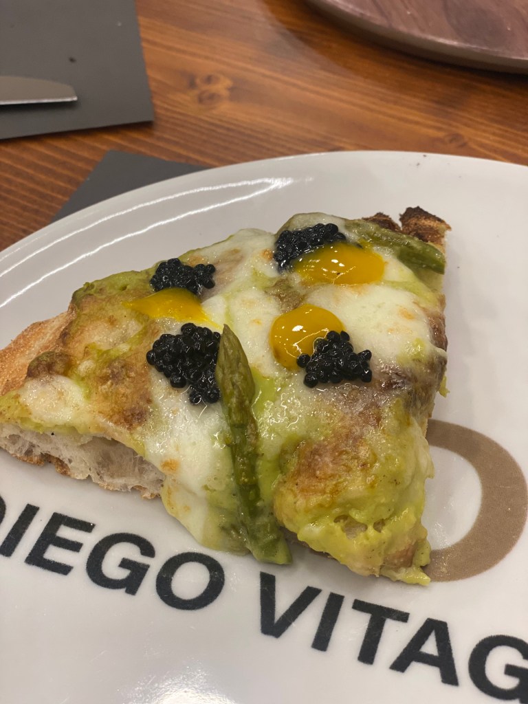 Stesso teorema per chi conosce la bellezza ed è capace di darle del tu: vellutata di asparagi, fiordilatte, asparagi, burro nocciola, tuorlo d’uovo a vapore e caviale di tartufo. Goccia a goccia, spingere senza strappare. Identità educata e forte. Umami crunch. Che fretta c’era, (maledetta) Dolce Primavera!