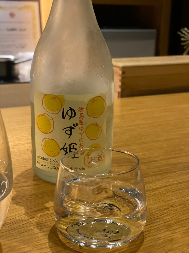 Sake con shochu di orzo e succo di yuzu, bevanda molto amata dagli appassionati della cucina giapponese. Servito on the rocks.