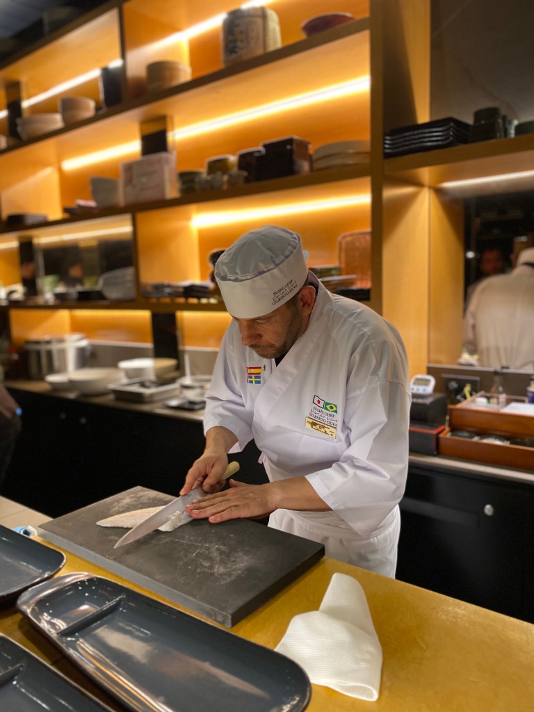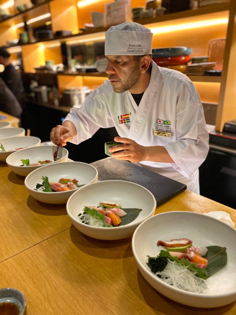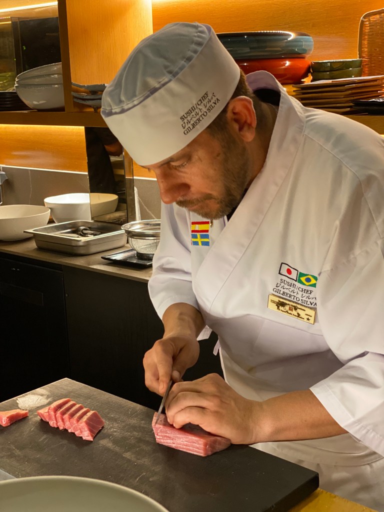 Sei posti. Solo sei. E un bancone che si fa palcoscenico del sushi master di origini brasiliane Gilberto Silva. Un dono, una emozione. La barriera tra sale e cucina è disciolta.