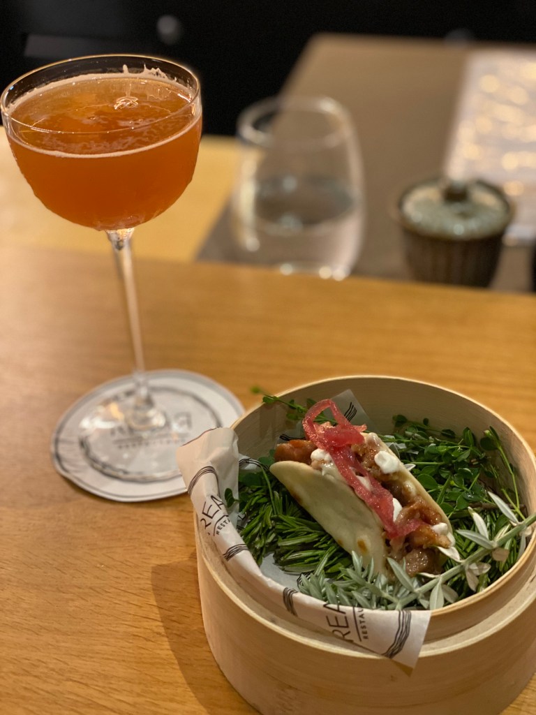 Cocktail con acqua di pomodoro, miso, fragola, caramello salato, Vodka e Champagne. In un percorso di abbinamento, gioca il ruolo di apripista: perfetto per l’aperitivo, profumato ed avvolgente. Un sorso ricco di grazia.