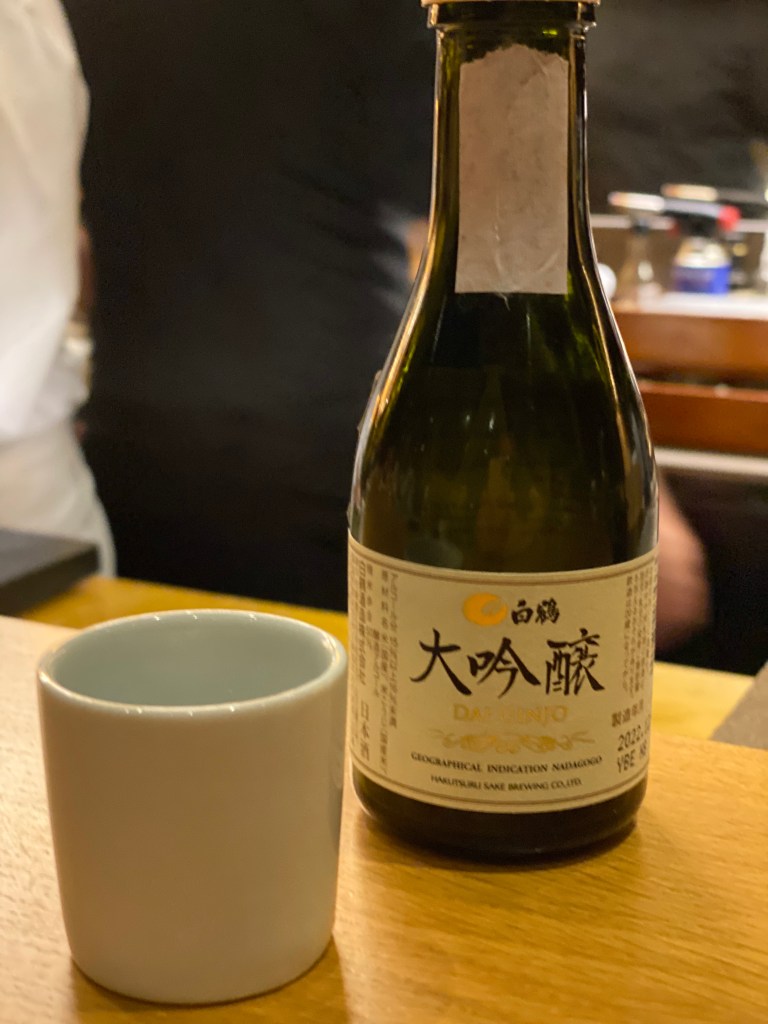 Sakè raffinato, ottenuto dal riso grezzo lavorato a mano, con acqua dura della sorgente di Nada. Servito freddo.