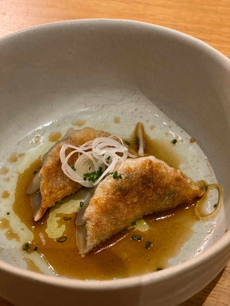 Gyoza Ebi, ravioli di gambero rosso di Mazara del Vallo e verdure. Divertissement.