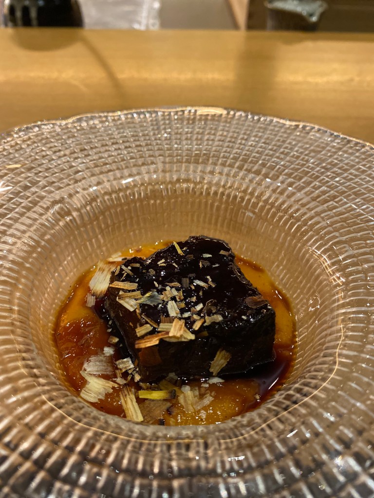 Guanciale di Kobe cbt in salsa demi-glace con crema di zucca. Ancora Partenope con gli occhi a mandorla, come una Genovese…