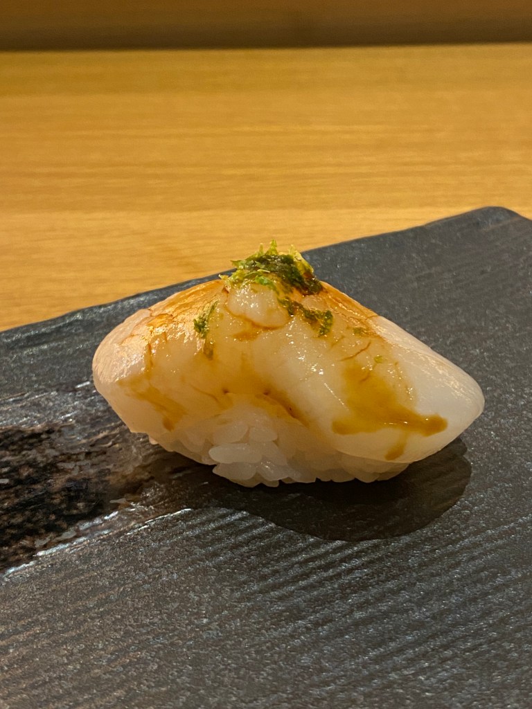 Nigiri Hotate (capasanta del Canada). Lungo.