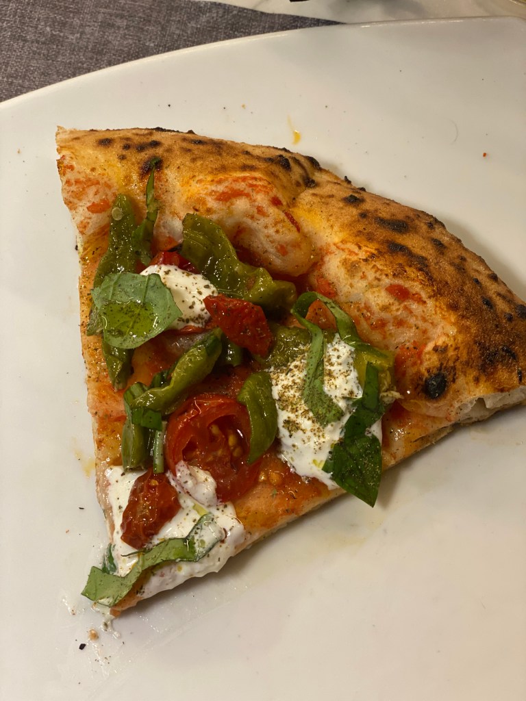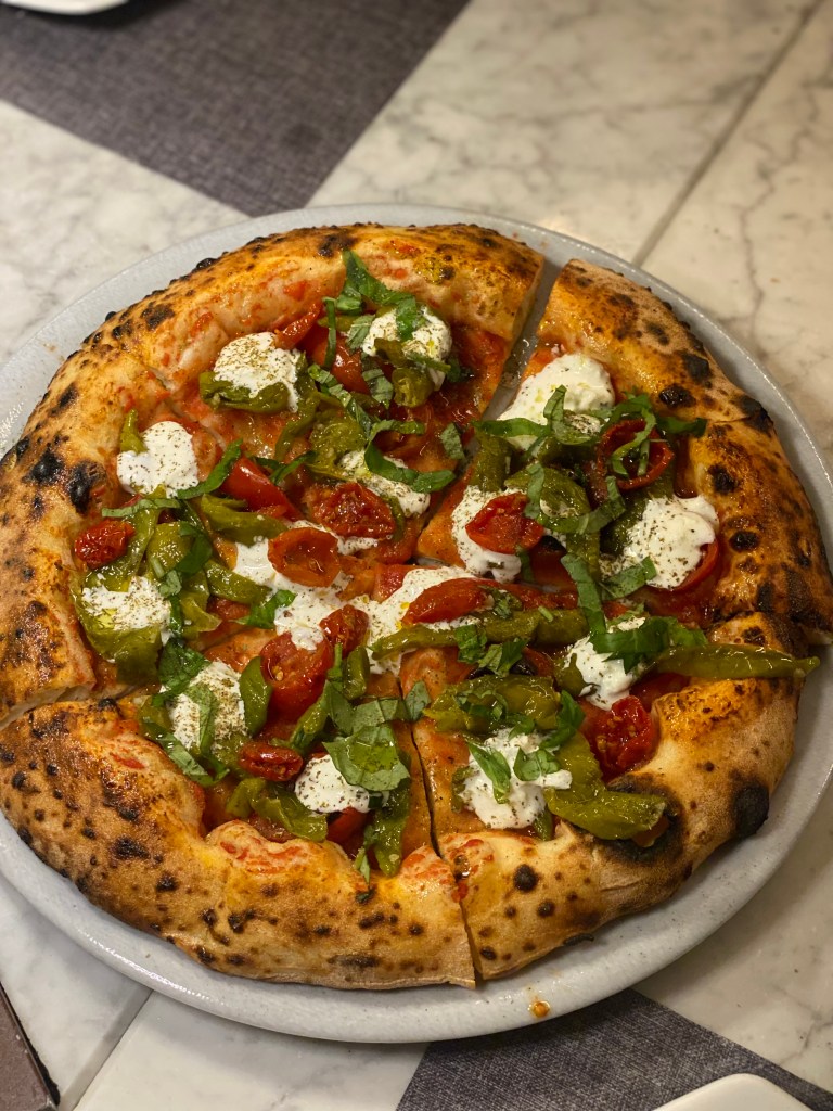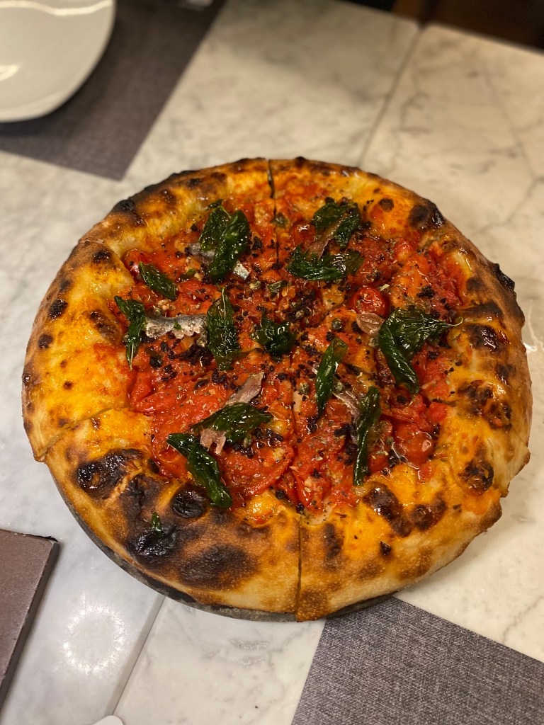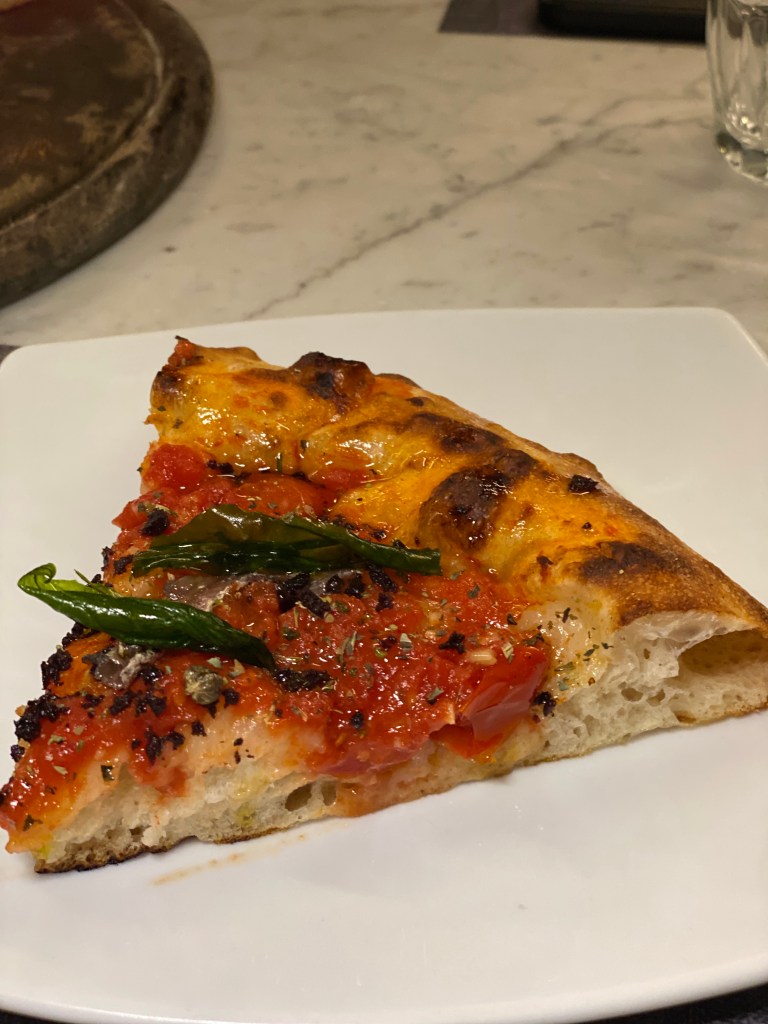 Arrivava fumante, sottilissima, extralarge, bruciacchiatina ai bordi, cotta divinamente in superficie. Pepperoni Pizza. Io come Michelangelo delle Tartarughe Ninja. Pomodoro (e che pomodoro!), abbondante formaggio, rondelle di salame piccante che fanno da gradienti per l’olio buono. Crunch infinito, opulenza sfacciata. Una creazione mondiale, manifesto internazionale, da effetti allucinogeni e stupefacenti. A menù subitissimo.
