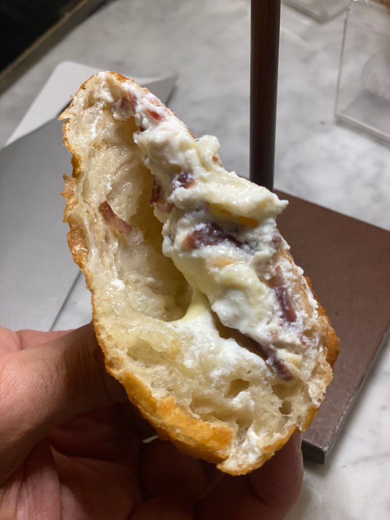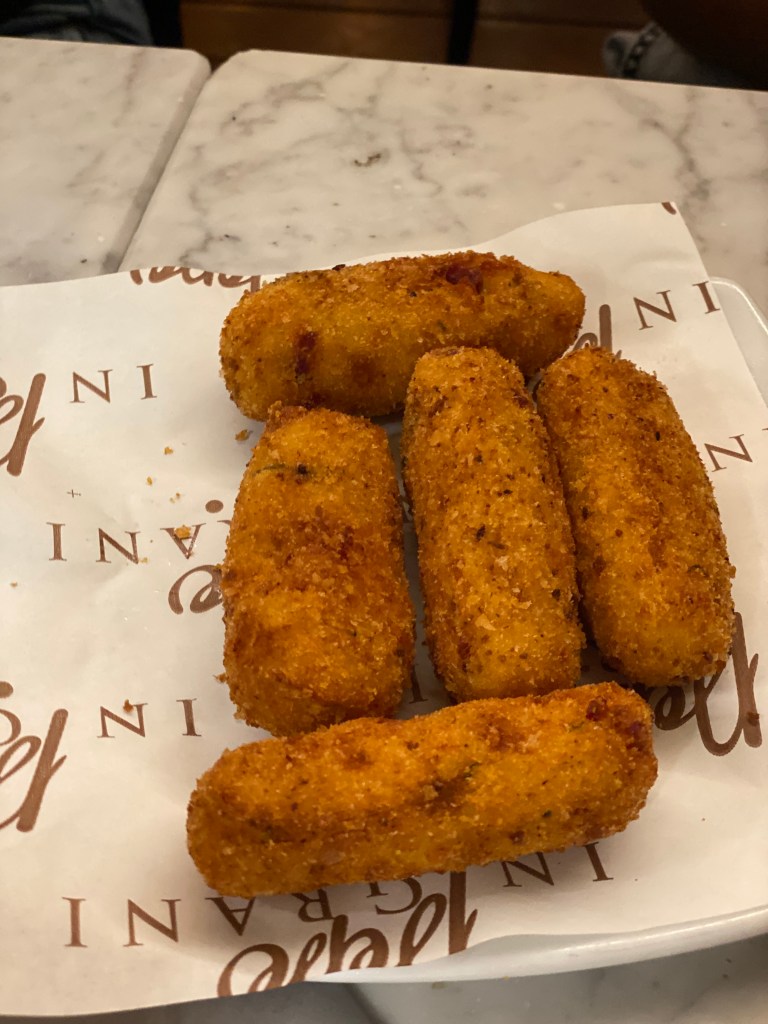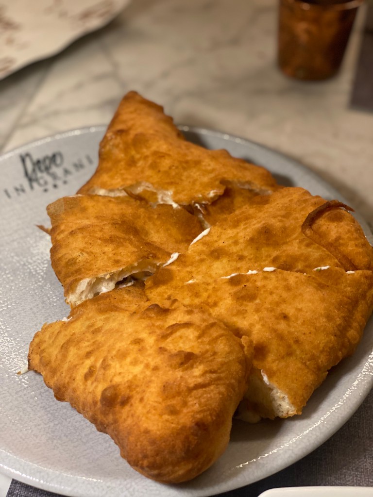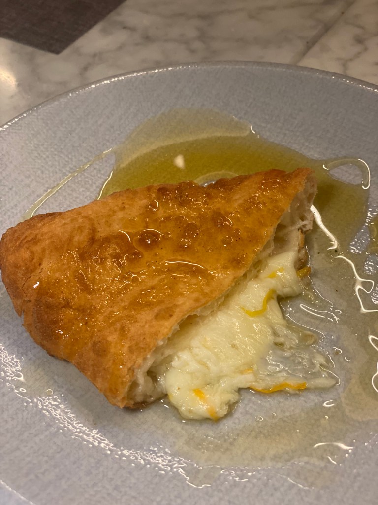 La Fritta disarmante. Salame, ricotta, scamorza, pepe. Superfluo parlare della doratura. Sospeso. Come un giudizio che tocca traiettorie impossibili. Salvezza gastronomica.