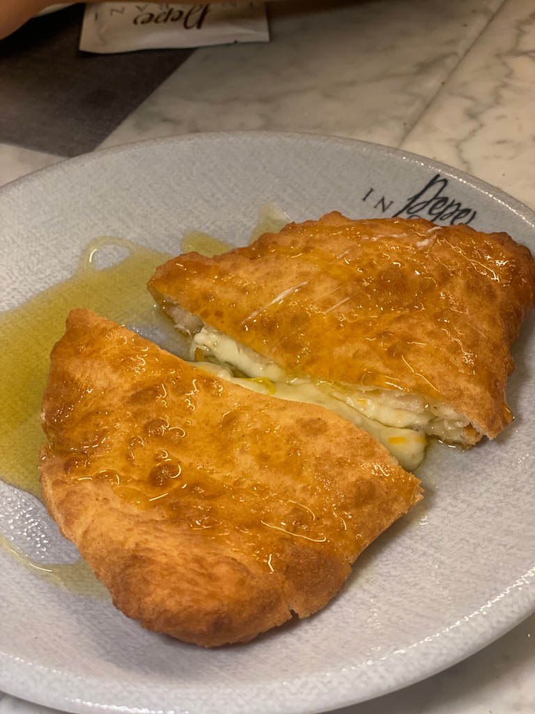 Una mezza dozzina si erano fatte avanti. Tra una curiosità scellerata e un “ma come ho fatto a perderla?”. Vabbè, i fritti qui non conoscono giochi mentali da nerd della pizza. Vanno presi e basta! Un giro di Coni stagionali, un tuffo nei crocchè (ero sbarbato l’ultima volta) e il-mai-preso Calzone.