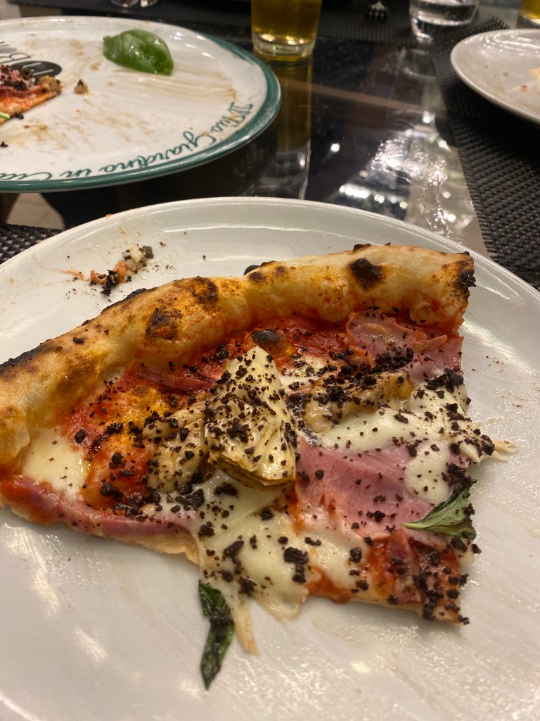 Ma come non spendere subito due parole per una Margherita moderna priva di disordine con tutti i crismi. Sapidità tranquilla (solo del formaggio), acidità dosata, cottura wow. Come una passeggiata sulle nuvole…