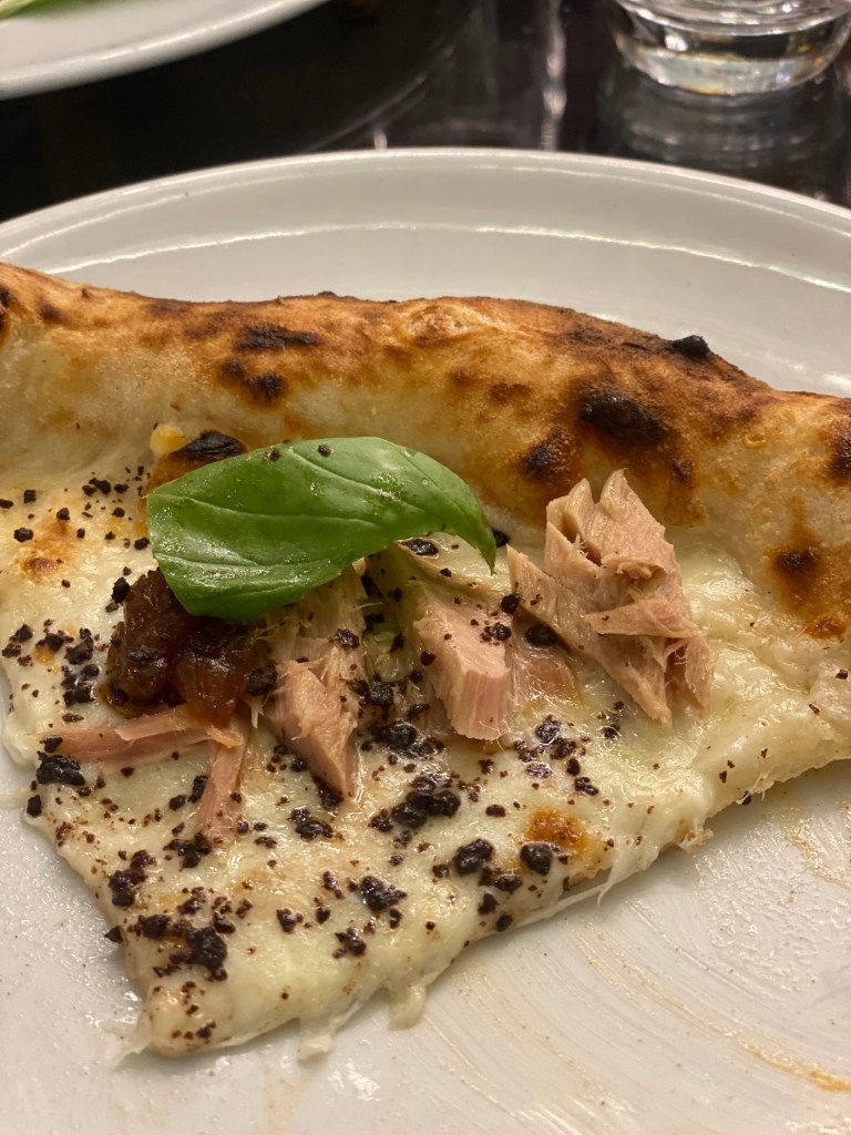 Infine, la Tonnaria sa di estate e annienta la mia insofferenza verso le pizze col tonno. Dosaggio e cipolla caramellata al brandy allungano in freschezza e predispongono al dolce.