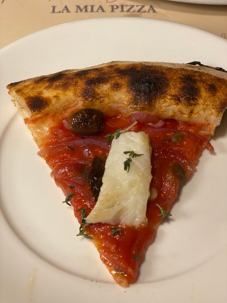 Fiondarsi sul classicismo. Qualcuno ha detto baccalà? In dolce compagnia di pomodoro (dal menù si rimarca il made in Italy), capperi, olive, cipolla e aglio. Impasto tirato a lucido! Delicatissimo che sul finale concede vibranti note crunchose, cornicione in forma smagliante e cottura millimetrica. La farcitura s’illumina d’avvenenza. Dolcezza, umami, morso croccante e saporito. Tra le più vanitose mai assaggiate con il re-del-nord. Pericolosissima…