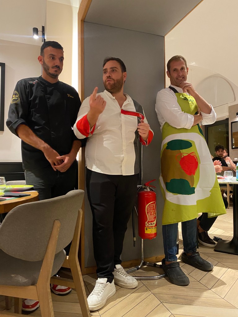 Salvatore scrive, infine, il manifesto di ciò che erano, sono e saranno. Radici e cielo. Sentimento e altro. Pizza fritta e Oshirase. Cicoli, ricotta e fuori dal piatto. La seconda fuori dal continente, manzo, soia e oriente con salsa di peperoncini verdi. Confini e orizzonti.