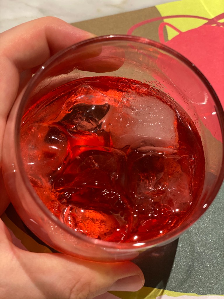 Negroni (al mirtillo) di fine pasto e sensibilità: e così l’impasto invenduto diventa cubotto glassato al caffè e trova vita superba nel Drymisù (crema al mascarpone e polvere di caffè). Forse non si sa ma pure questo è amore.