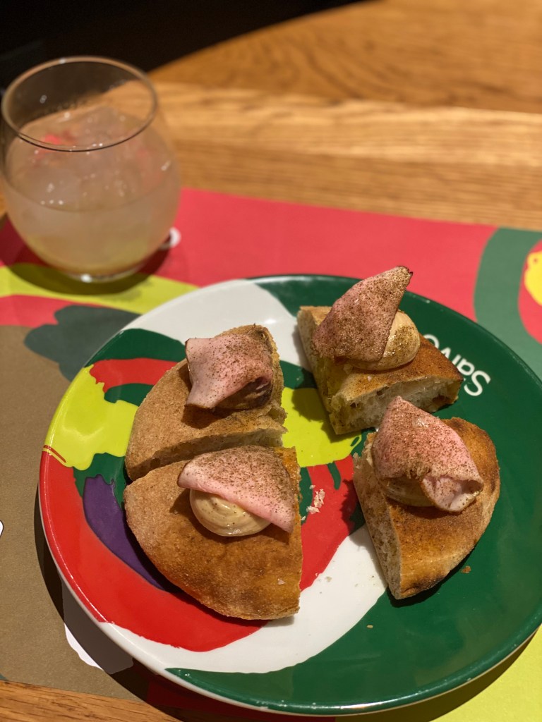 Mi chiedi se è vero che non vedo l’ora del padellino. Vitello tonnato (con polvere di capperi e sale di Maldon) best seller! Tuffarsi nella morbidezza avvolgente, che precede il crunch ciancioso della Zingara Ischitana (prosciutto crudo D’Osvaldo, mozzarella di bufala, maionese al basilico, datterini arrosto, lattughino croccante) dove davvero si muore d’amore. Lorenzo docet! Sentimenti primari. Acidità, freschezza a sgrassare con il Yuzu Gimlet, vodka e cordiale di yuzu.