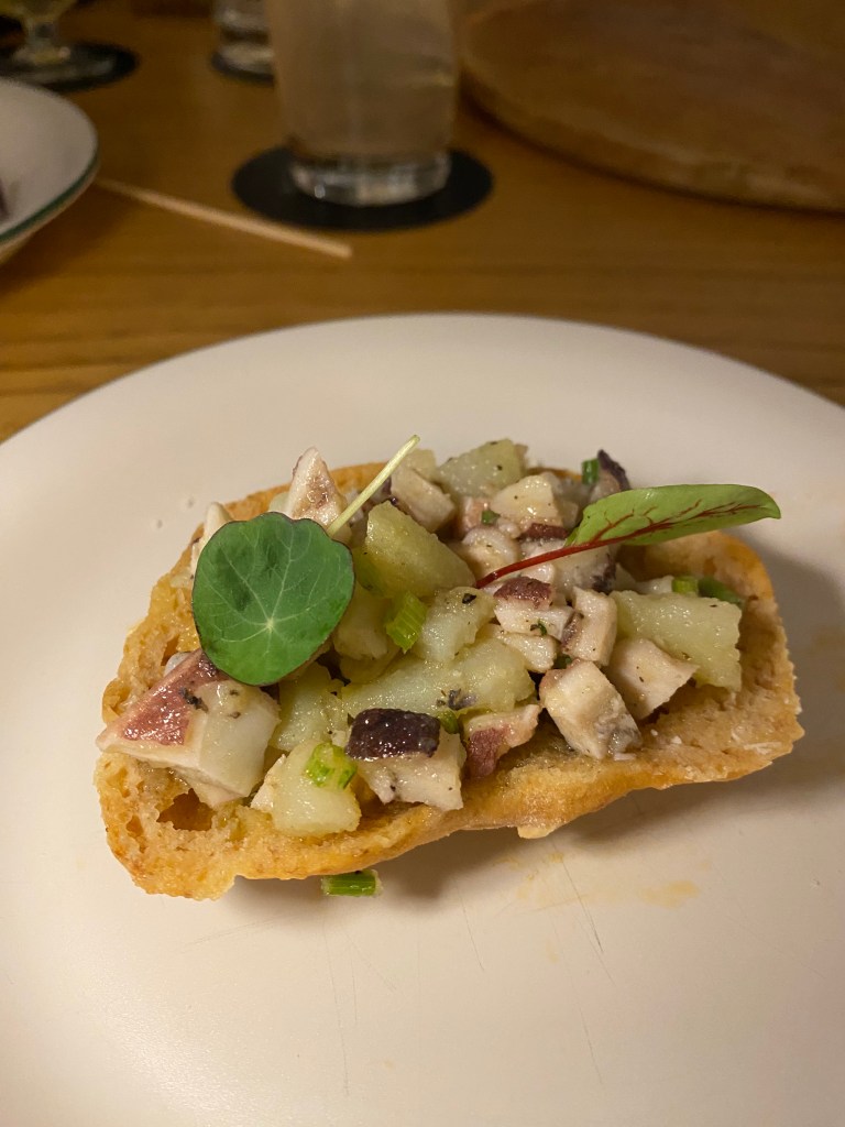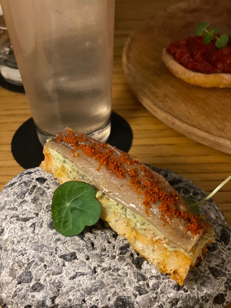 Il Crostino con burro alle erbe e sarda affumicata effusione entusiasta e necessaria.